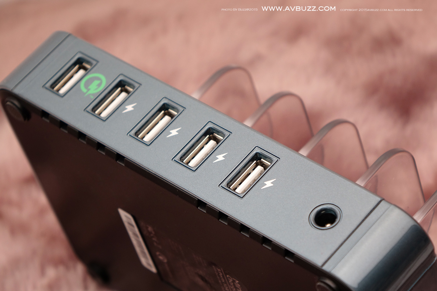 充電座的五個位是如圖所現,最左手邊屬於 Quick Charge 2.0 接口,並有綠色標示該個接口。