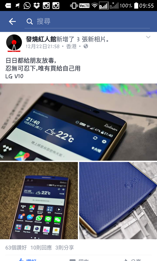 我項少龍話 : 幾時係換機時候?當身邊的人都用同一款式時,就係換機時候。哈哈哈~~~咪玩啦,LG V10 咁多強項,我邊有其他選擇合我個人口味的機款啊? 等 L11啦。