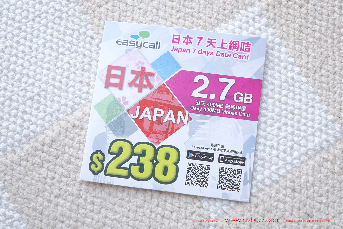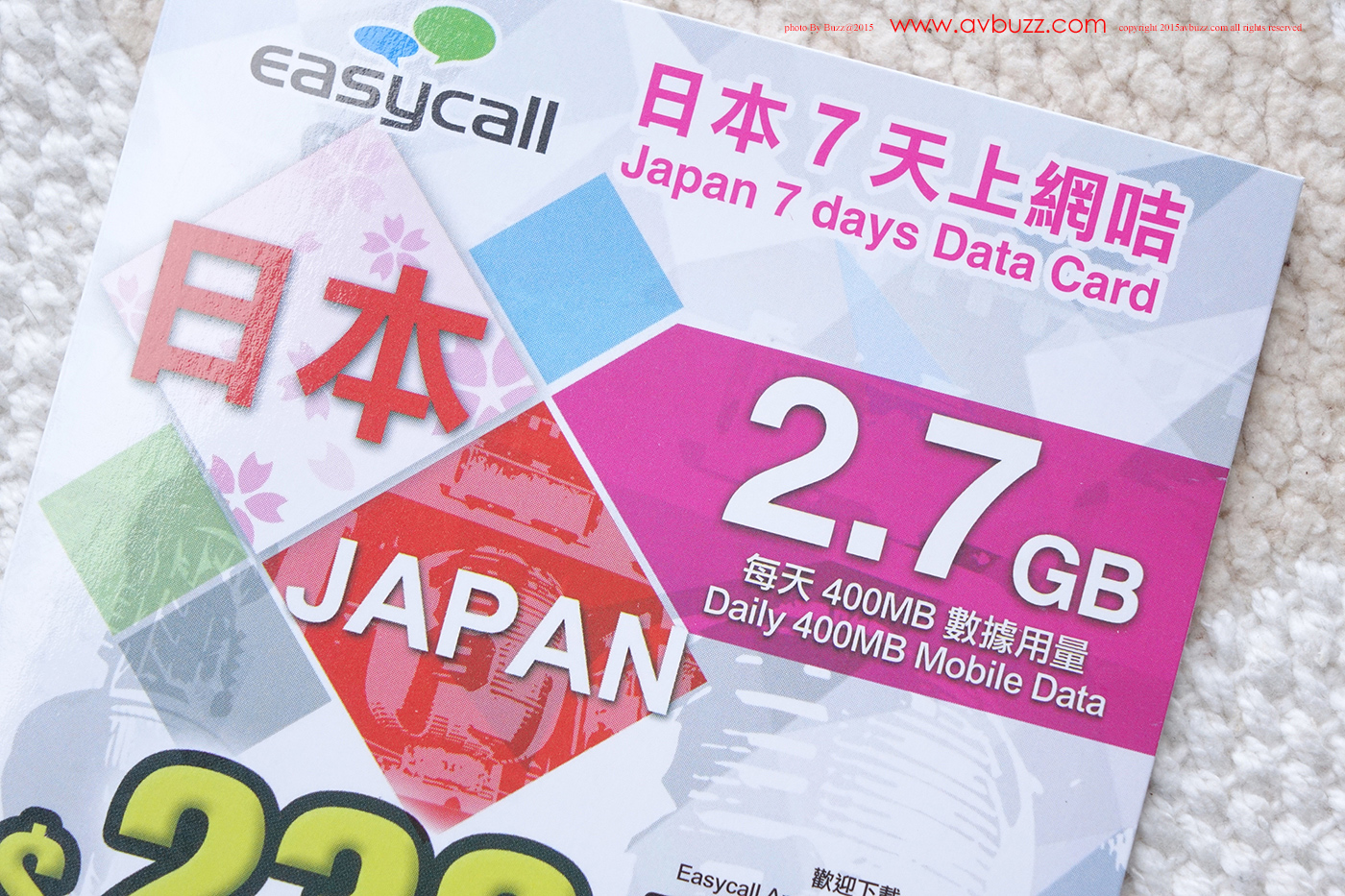 今次日本 14天行程裡,前段用了阿信屋7天外遊數據卡,餘下的7日行程,本來打算用我最有信心而且平靚正的富士卡,但一向黑仔的我,剛剛好富士卡就是沒有再推出,唯有試過其他卡。在眾多日本外遊數據卡裡,我最後選擇了呢張由EasyCall 代理的 3G網絡日本 7日 2.7GB數據量外遊卡。~~唔好被印刷上的價錢嚇親,唔需要真係付出 $238 先買到,在鴨寮街的店鋪,實收 $80 – $90港元不等。