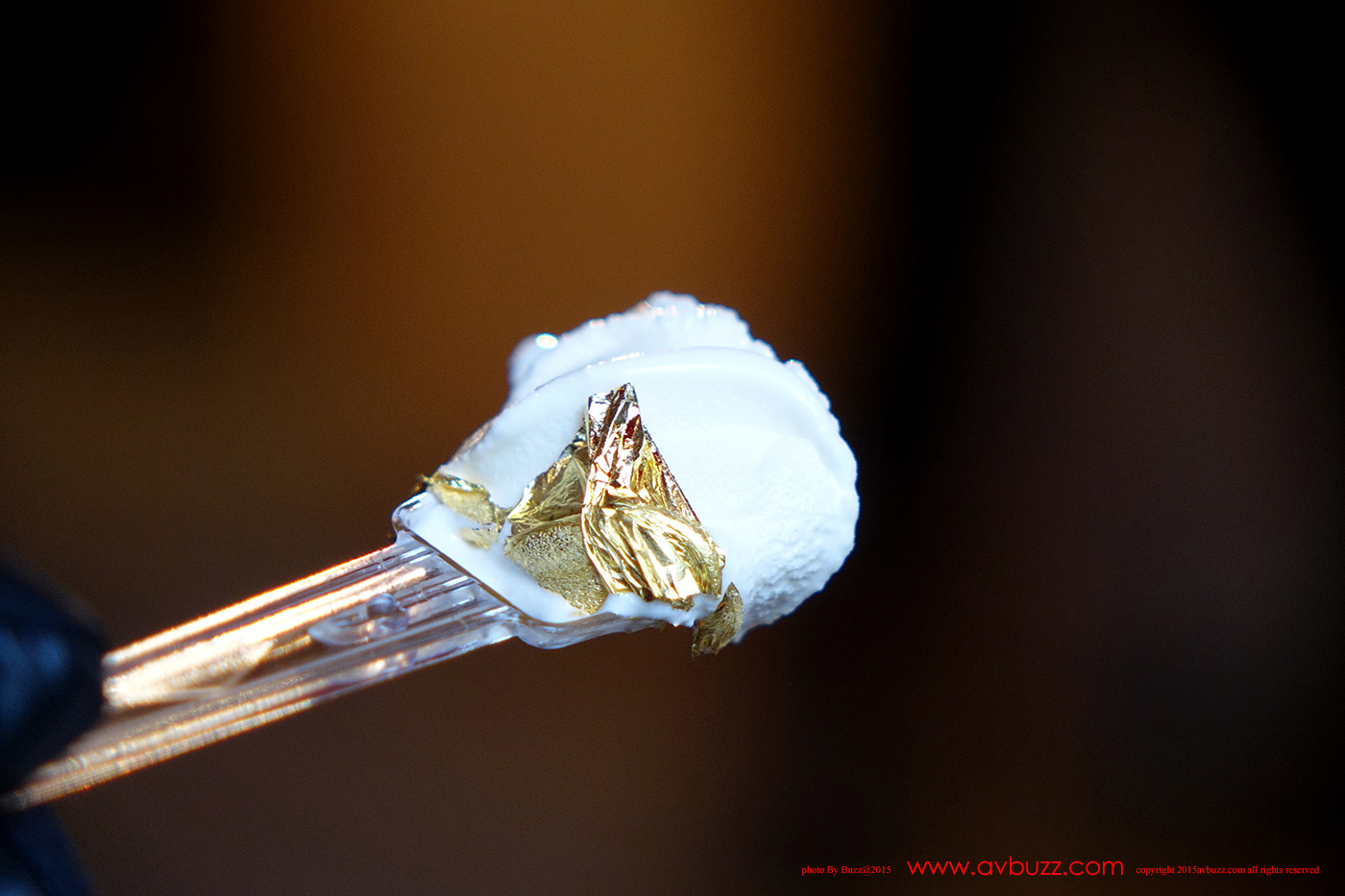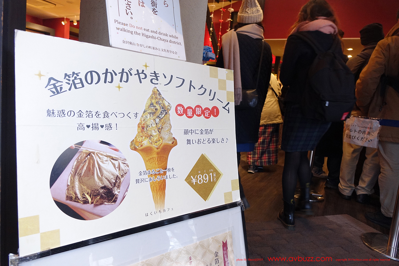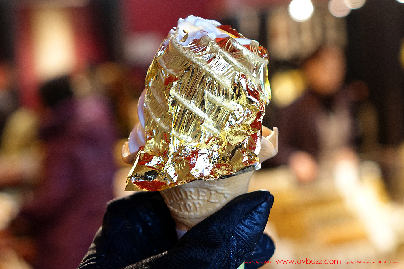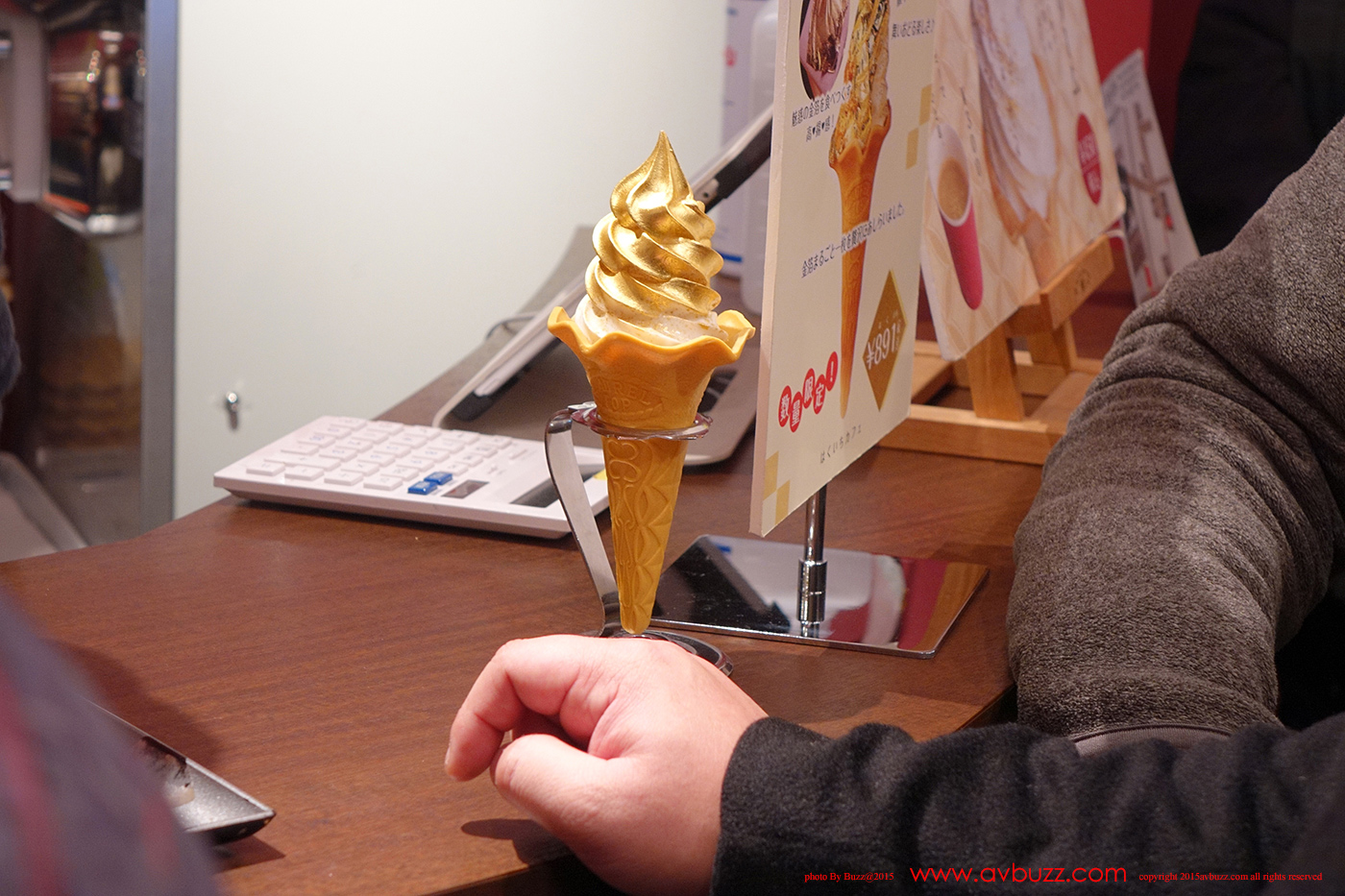 各位觀眾~~~~一生人必食一次的金澤金箔軟雪糕。一整片金箔放上軟雪糕,加上現場提供的光源和背景,好震撼啊。