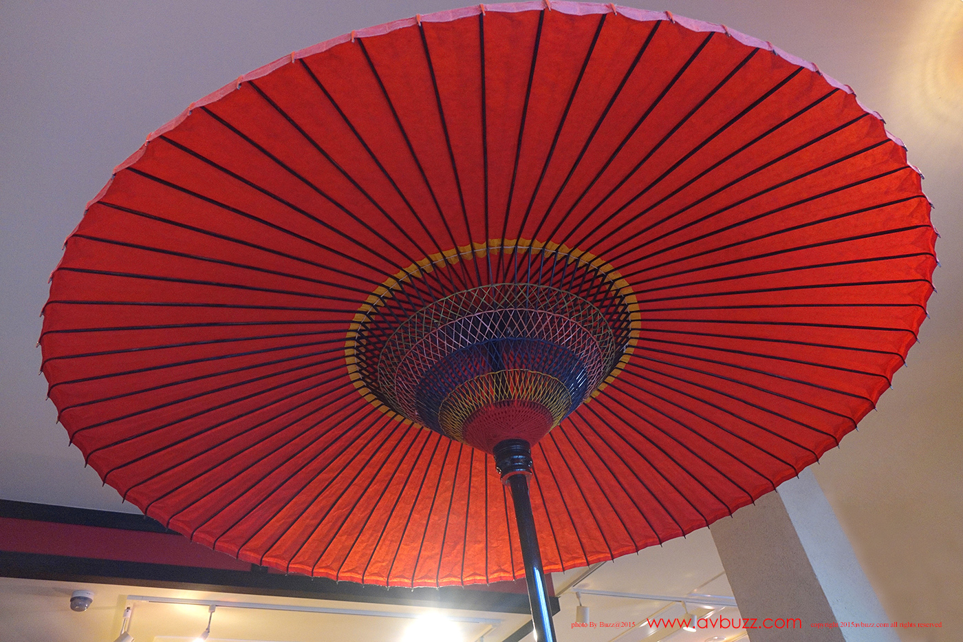 如果覺得金箔顏色單調,可以向上望,會見到這一把紅傘,企在這紅巨傘下,紅色會投映到金箔上面。
