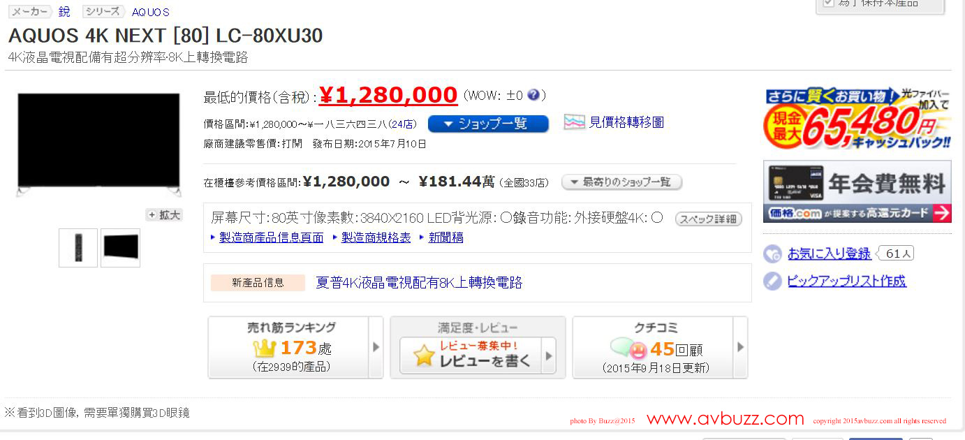 日本之行,必定要去各大電器店八卦一下,這日行經 bic camera 主要通道,見到呢個場面,SHARP 8K 解像能力電視 LC-80XU30 展示中,除了吸引我,還有他。呢部電視去年7月推出發售,網底蛙的我當然無見過實物啦,今次還是第一次見,今後就可以同其他人講>>>>我見過~~我真係見過~~~嘩哈哈哈~~