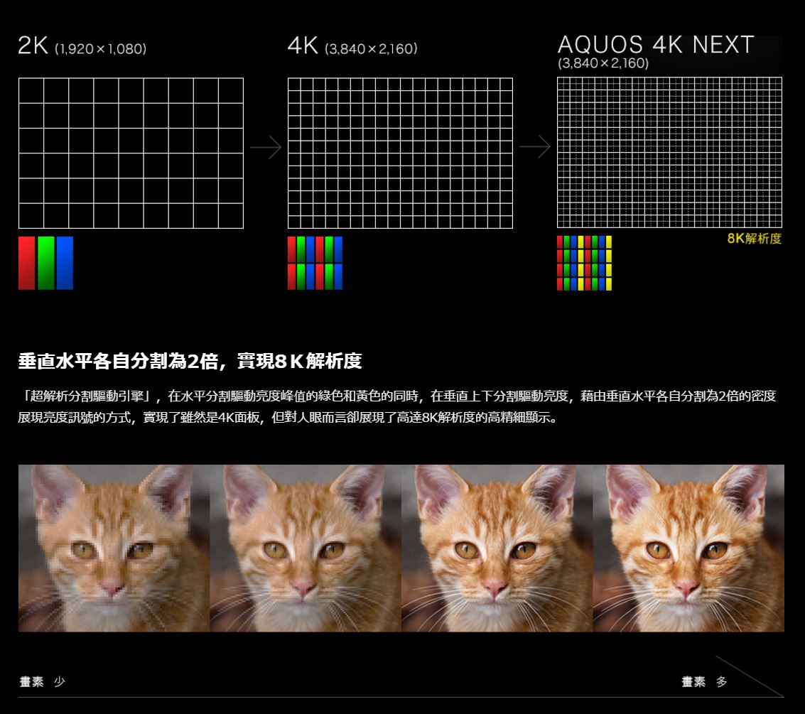 AQUOS 4K NEXT 是宣傳口號,代表著 ( X8- master Engine ) 4K變8K技術。