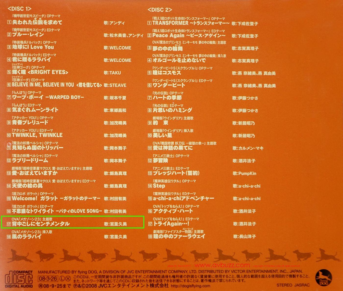 登登登~~~凳,開箱圖正式開始,這就是 flying DOG アニメコレクション テーマソング・アーカイブ 80’s Part II 專輯樣子。側紙上有提到售價 3150 円, Amazon .jp 現在 2891円買到,平少少咁啦。