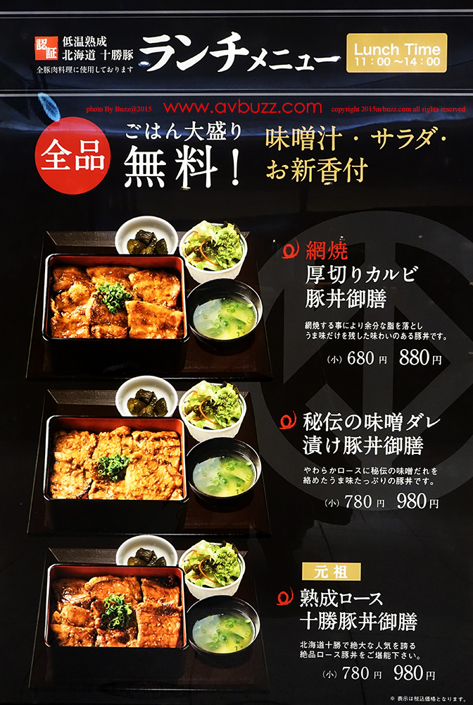 歌舞伎町地下街,新宿サブナード裡可找到這家低溫烤十勝豬肉飯的食店,其午餐推出的這三款最討我歡心,當中最吸引我是圖中所見第一款,網燒厚切豬肉飯,淨睇個名都流口水啦。每客680円 ( 約 $ 47 港元) 大份量的話,每客880円 ( 約 $ 60 港元)