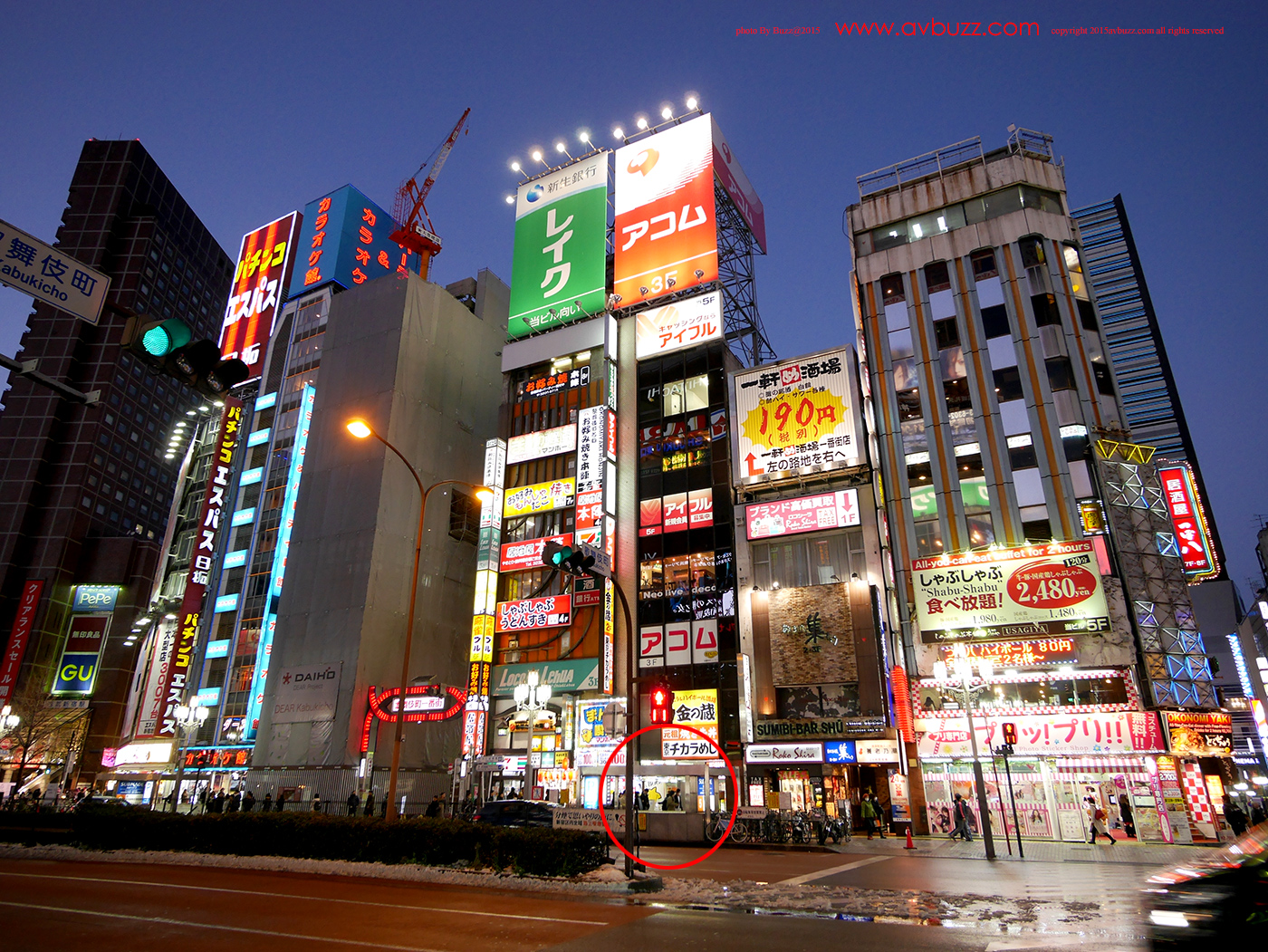 如果你不確定新宿サブナード地下街的位置,這畫面你一定熟識了吧,歌舞伎町入口前的 靖国通,對嗎? 不錯,靖国通 腳下正正就是我們要找的這個地下街,而入口就是圖中紅圈所見的行人道入口向下落樓梯就會到達。