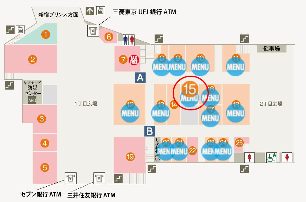 這店位於歌舞伎町地下街,新宿サブナード裡,位於一丁目地區裡的15號店鋪。新宿サブナードShopping Mall 地址 : 歌舞伎町1-2-2 (靖国通り地下街), 新宿区, Tōkyō, 160-0021, 日本