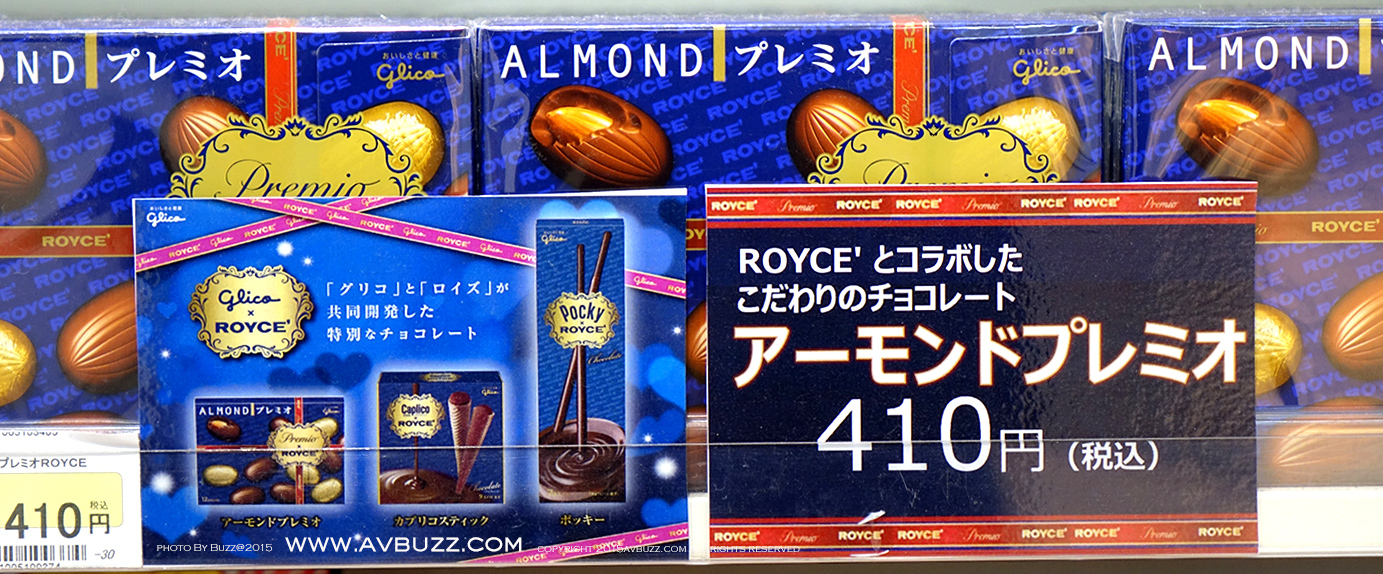 齊章~~~~朱古力夾心棒,杏仁朱古力,還有朱古力棒三款。 每款劃一售價為 410円 (約港幣$28)。