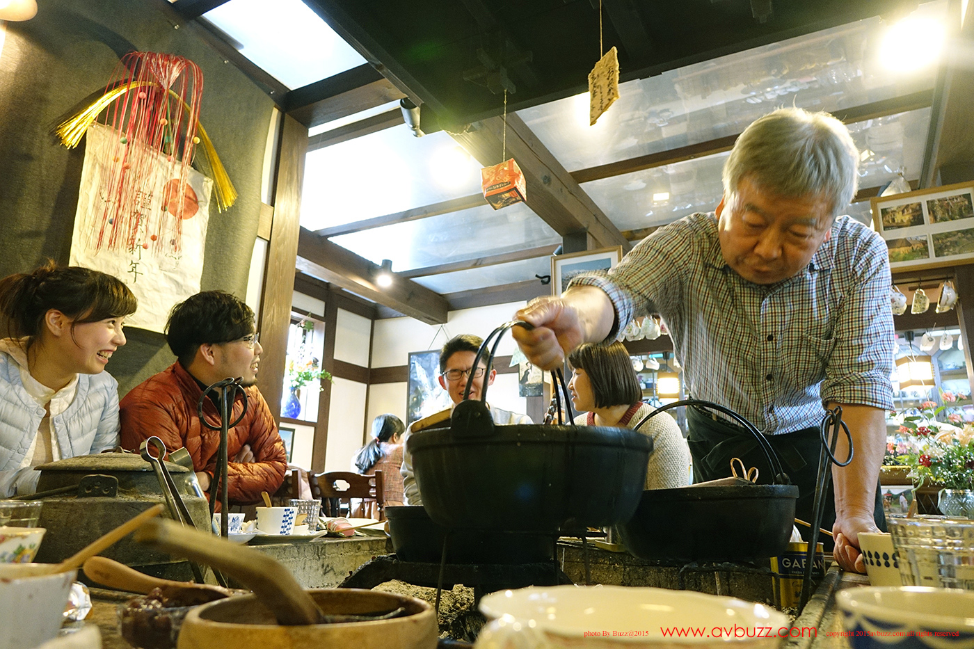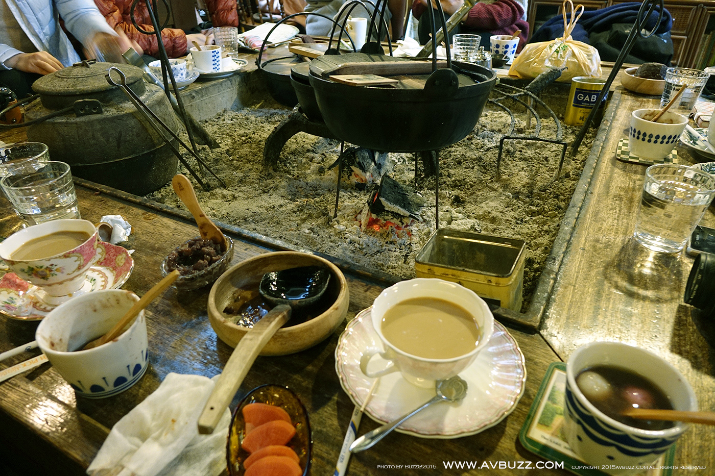 在這座擁有幾百年歷史的合掌屋裡,我一邊上網,一邊聽老闆播放的爵士樂,非常享受這個環境,老闆還不時來搞動煲底,和為客人添加紅豆湯。