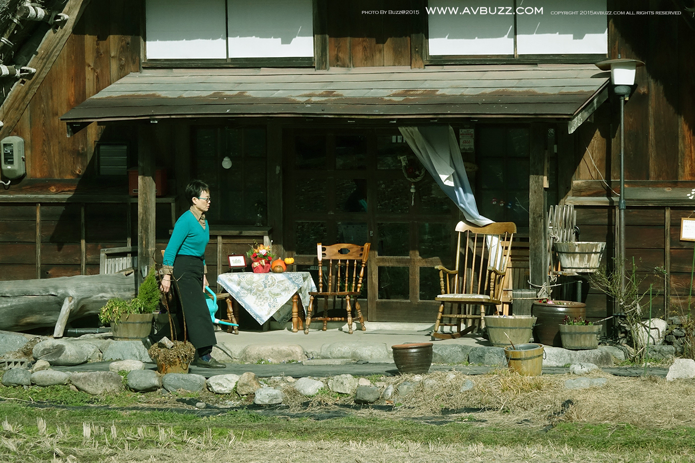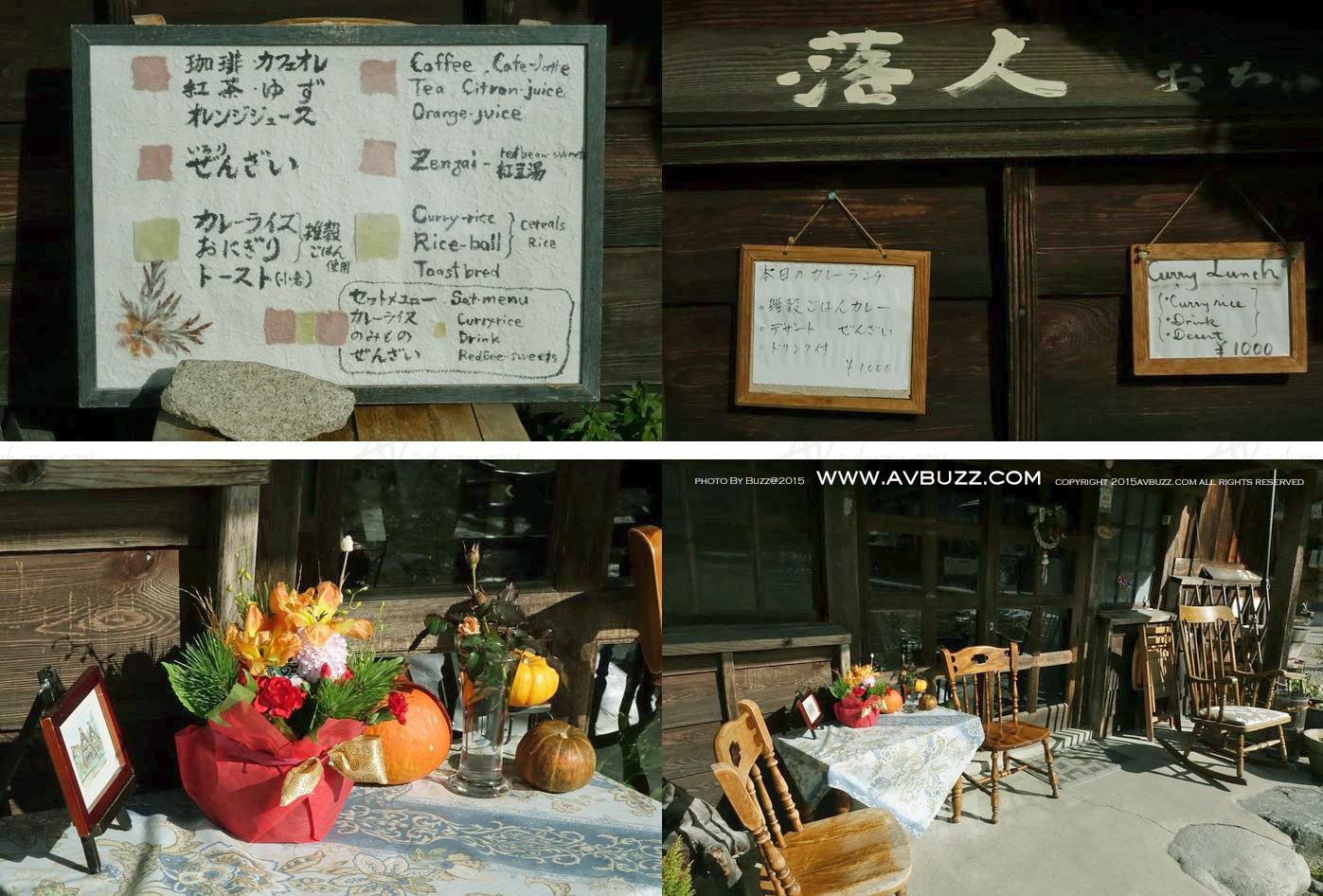 落人珈琲 是在其中一家合掌屋 ( 合掌造 ) 內經營,門前有一片很大的耕地,門前有安樂椅給遊人休息。