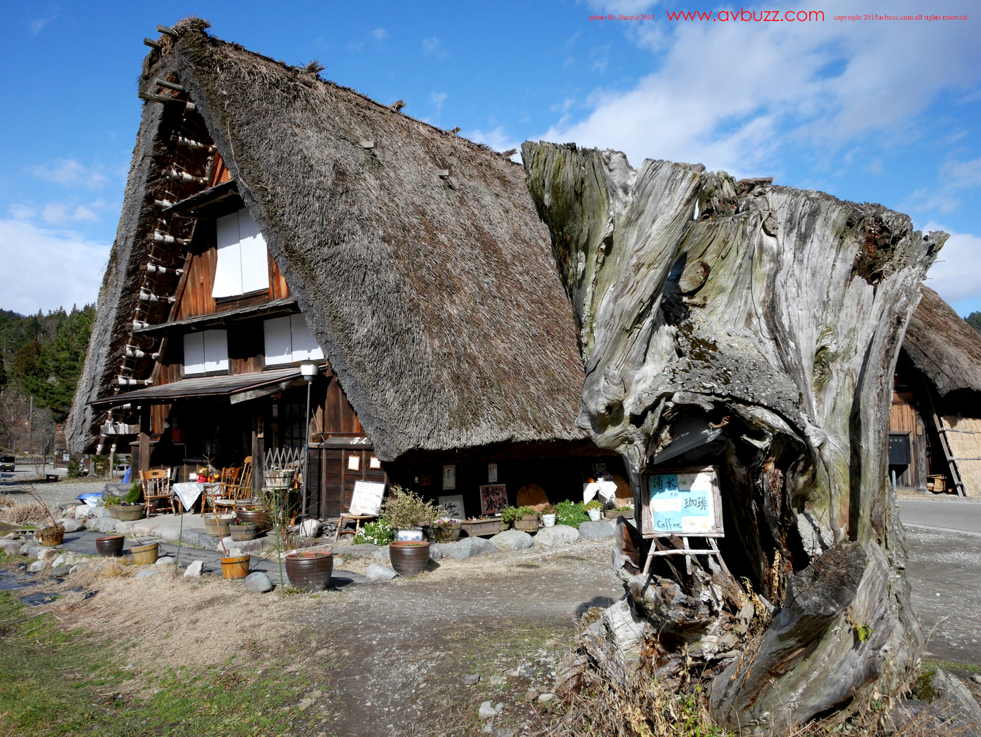 三層的合掌屋 ( 合掌造 ),老闆只開放地下的一層給客人光顧,所以座位不多,但我喜歡這裡氣氛, 非常喜歡和享受身處這個 落人珈琲 的時光,加上這日藍天白雲,心情大好。享受完這裡時光後,再繼續未完成行程,黃昏便上天守閣展望台,正是這篇文章第一張相,就是後來由天守閣展望台影下來合掌村的完成品,之後就在這裡的合掌村 ( 利兵衛 ) 入住一晚。