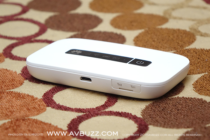 這是其厚度比例,在圖中所見是 micro USB 接口與兩個天線口位置。這機可同時支援11個用戶連接上網,能 LTE 4G/3G WIFI自動切換是理所當然的吧。