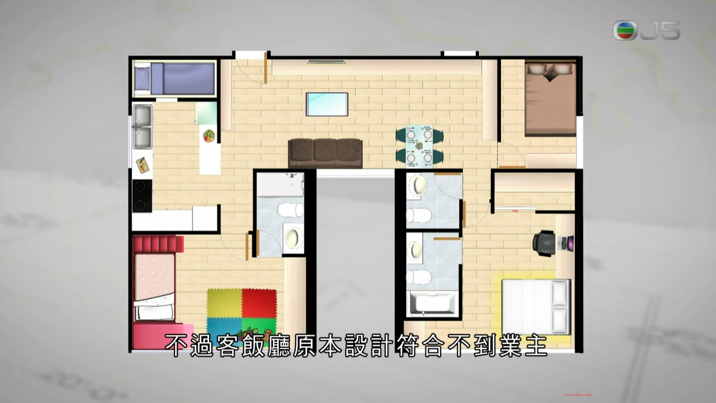 本週 J5 台播出的 樓盤內望 節目見到有屋主把兩個面積550平方呎單位打通成1100平方呎單位,單位間格四正,很是吸引, 見到都開心。^0^