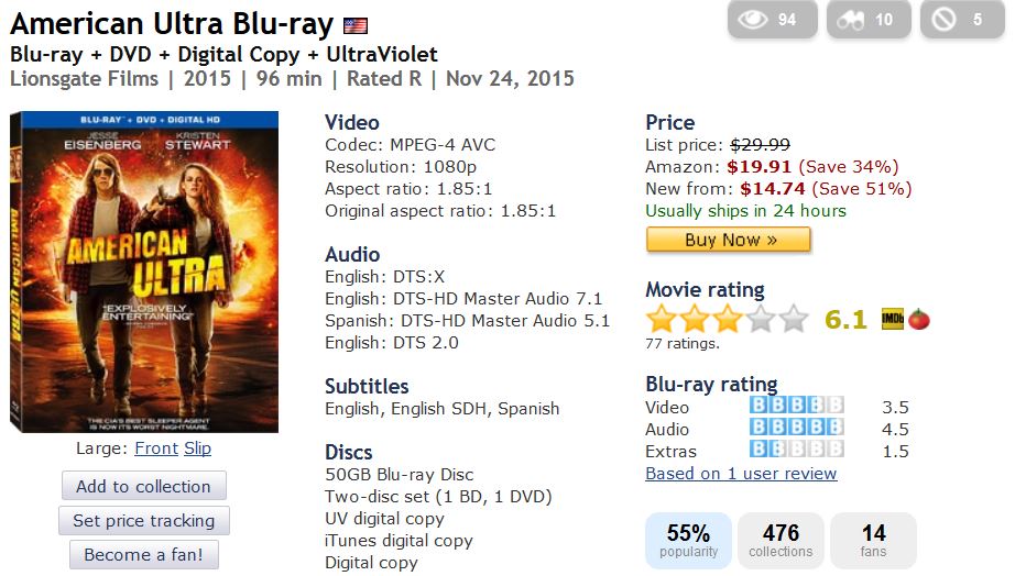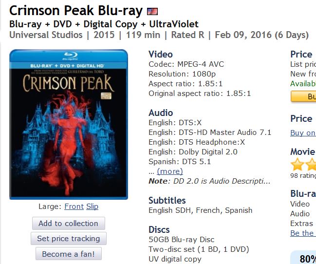 其他四隻擁有DTS : X 聲軌藍光碟名稱如下: Ex Machina ,American Ultra,Last Witch Hunter, 與 Crimson Peak ,剛更新了 Av amp的朋友,擁有了未呢? 未就快搶入了,搞咁多野都係為了這格式,不能錯過啊。