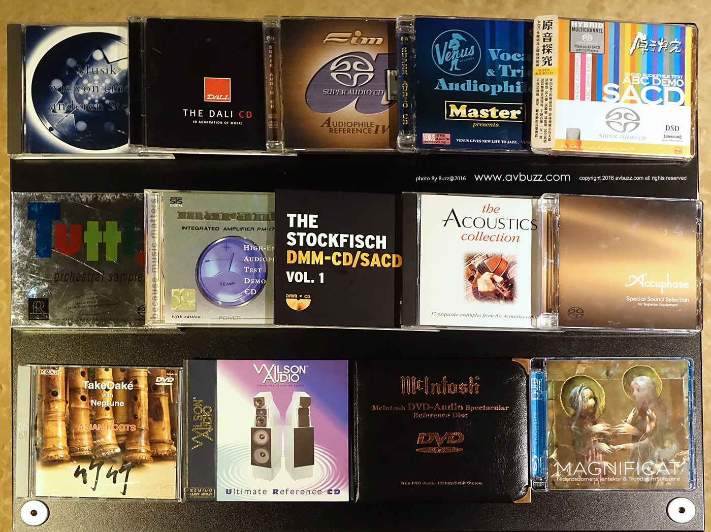 國仁一向做兩聲道示範會都是 CAS 不離手,今次經典天碟鑑賞會,播放的都是光碟,沒有檔案,自然不需要帶電腦來到現場,國仁為大家準備好合共 14 隻音樂軟件,當中 DVD Audio 佔2隻, SACD CD佔4隻,其餘8隻都是CD。