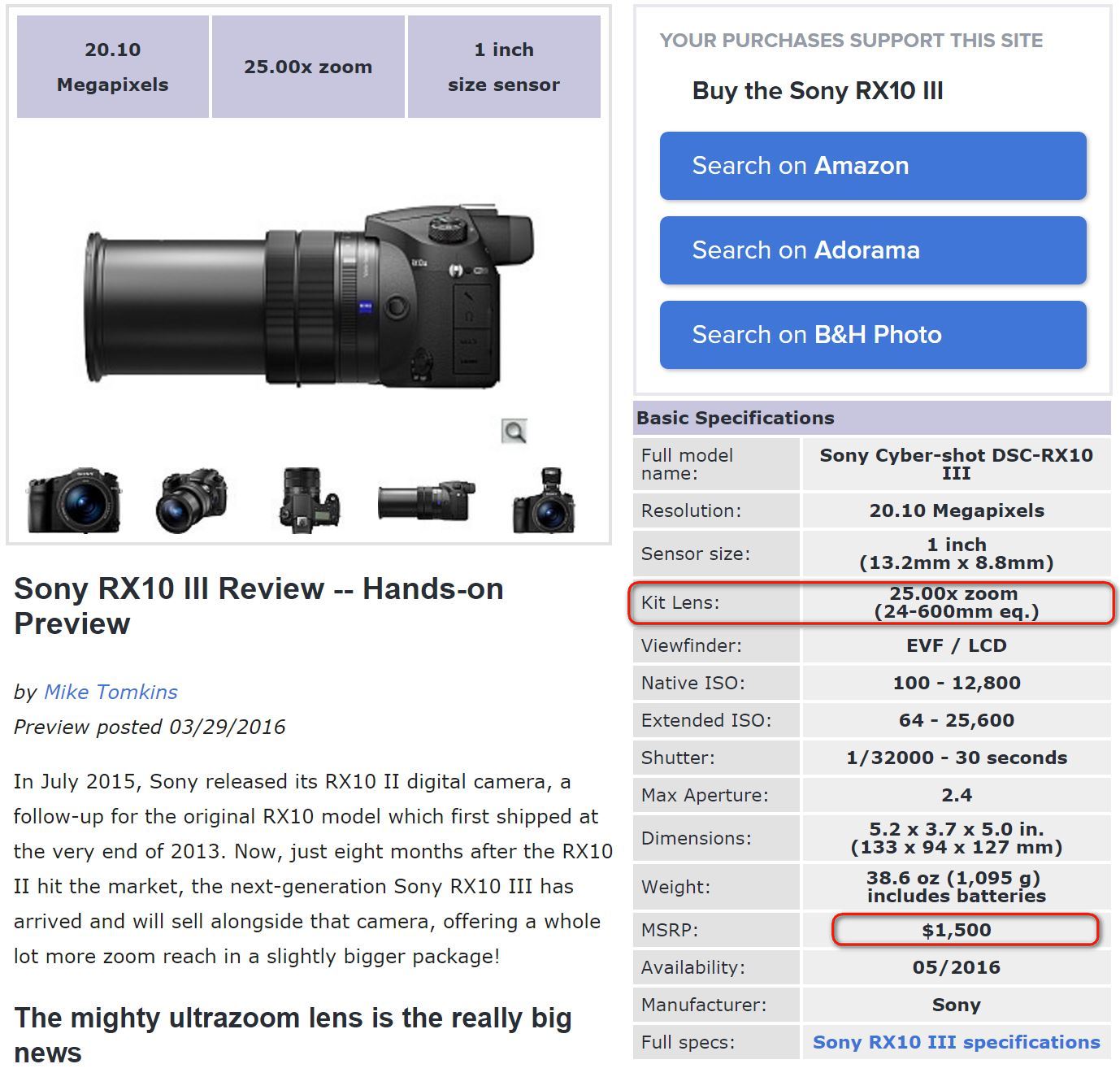 最最最最最嚇人是在鏡頭體積不太變大情況下,其射程範圍由本來 24-200mm 激增到24-600mm,真利害啊~~~透過下圖由 imaging-resource.com 所提供圖表可見,售 1500 美元,換算大約 ( $11635 港元 )