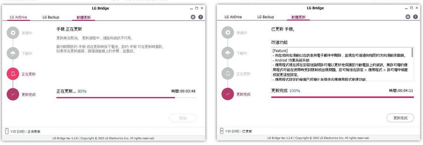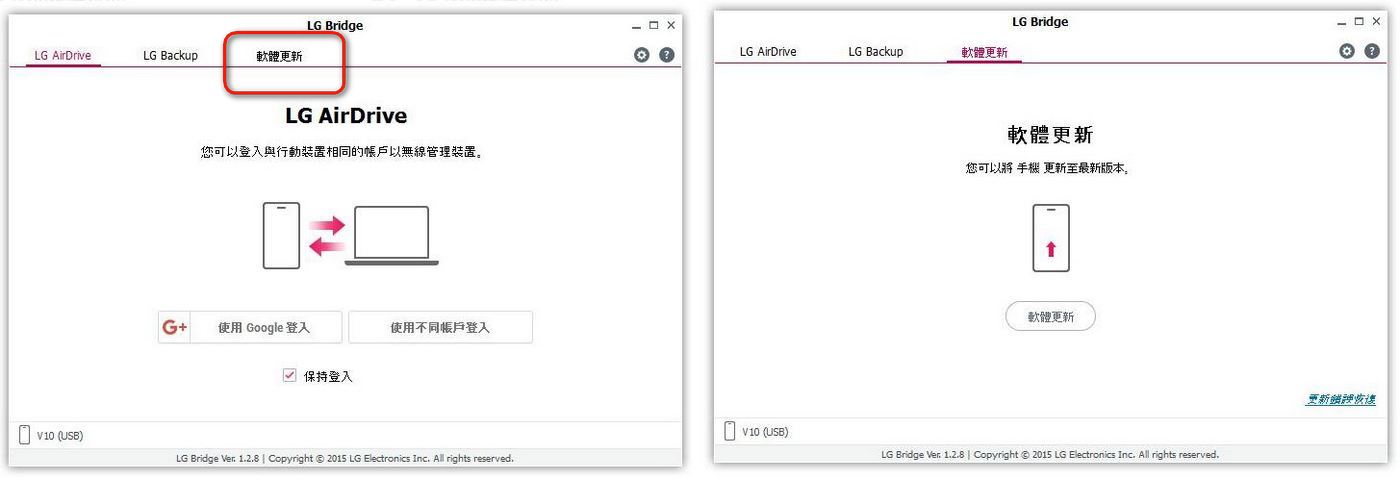用家如平日沒有安裝 LG Bridge 習慣,那可去官網下載 LG Bridge 這個電腦軟件,安裝後,把 LG V10 接駁電腦,透過 LG Bridge 軟件進行更新。