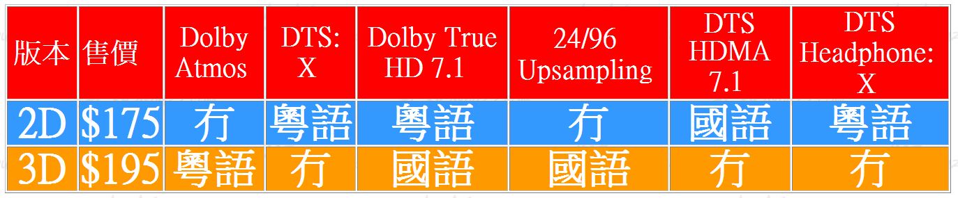 香港首隻擁有 DTS Headphone: X 聲軌藍光碟,點可能唔支持呢? 不過偷睇當日只看過2D版本,擁有 Dolby Atmos 的3D版沒有看過,未知 DTS : X 好,還是Dolby Atmos 好呢? 唯有到時購入雙碟版作AB比較先能有答案。