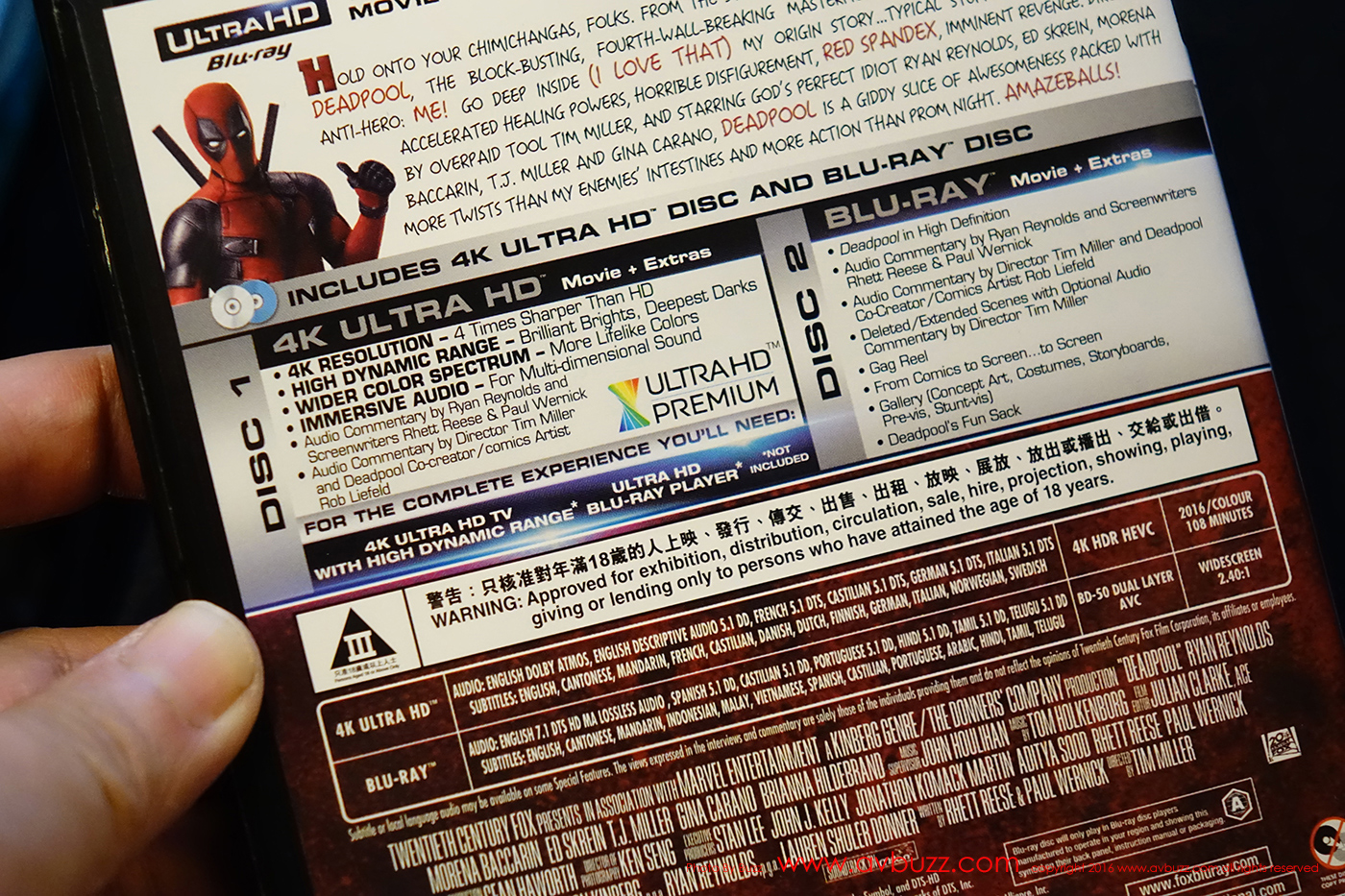 正所謂養兵千日,用在一時,HDR 同時能呈現光與暗位細節的重要性,不難在這電影上找得出來啊~~~ ^^。如手上有4K 播放機的話,我強烈推介這首隻擁有中文字幕的 4K ULTRA HD Deadpool (死侍)。如果代理商今次所開支票真能對現,再無甩轆的話,這星期四 5月26日便能買到現貨吧。