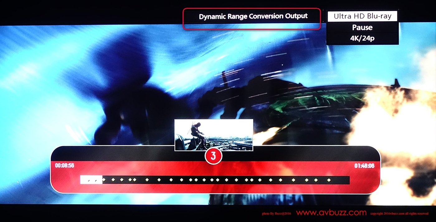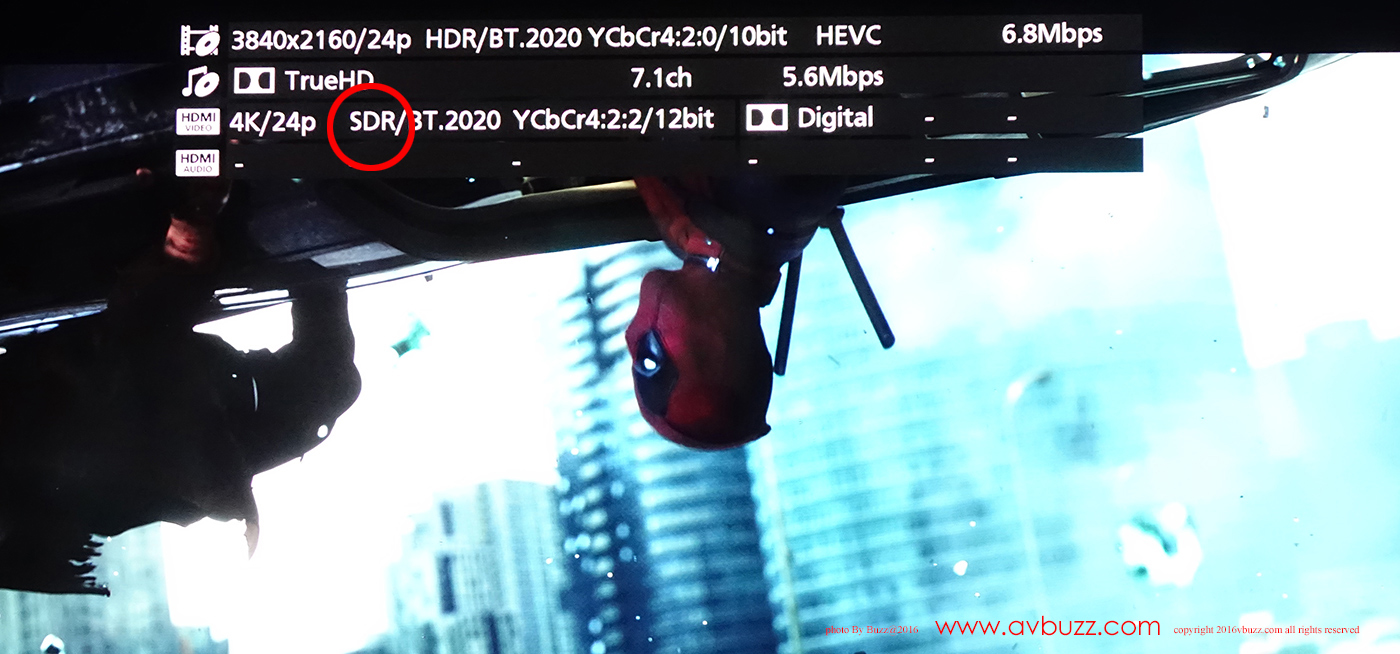 也是由於正以SDR方式播放。可見電視機正以 Dynamic Range Conversion 模式輸出。