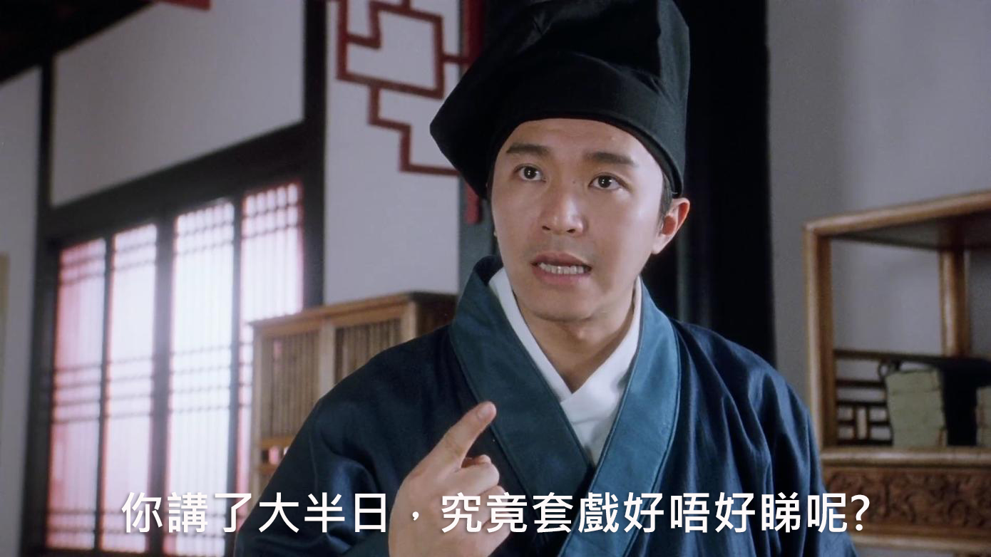 同一畫面,用台灣文字方式顯示,變成這一句。留意兩款繁體字幕的字體和大小也有差異。