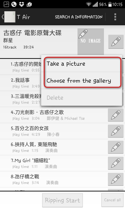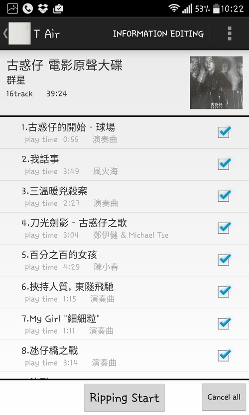 搞惦,封面殖入了,還可選擇只要某一些曲目都可以,唔一定要全選的。