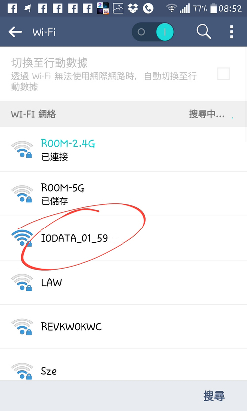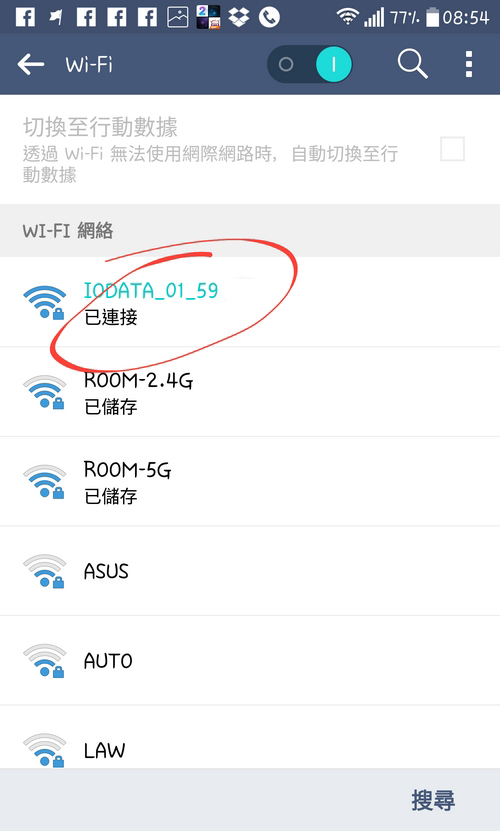 使用時,流動裝置跟 「T Air」以Wi-Fi 方式連接時,「T Air」用家便可見到是 IODATA吧。