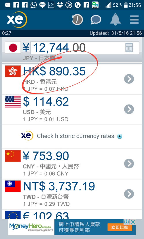 兩者差價 $321 港元。