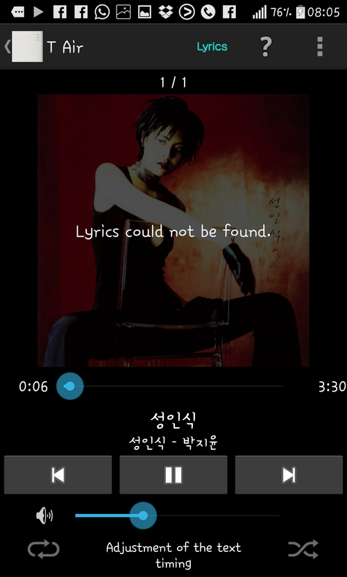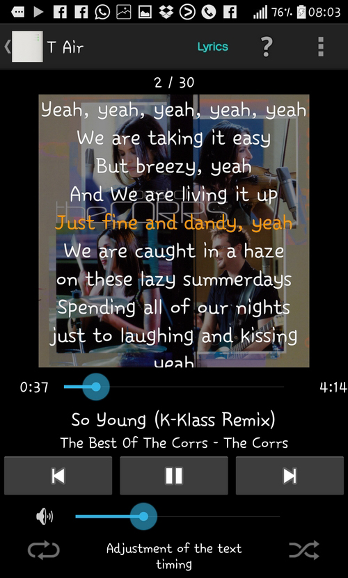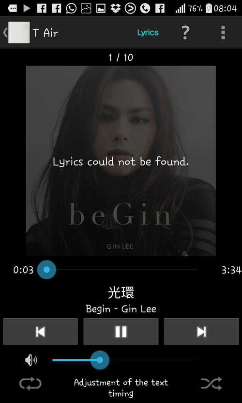 還有用橙色字來代表追踨的歌詞,大部份英語和日語歌曲,都能提供到歌詞。