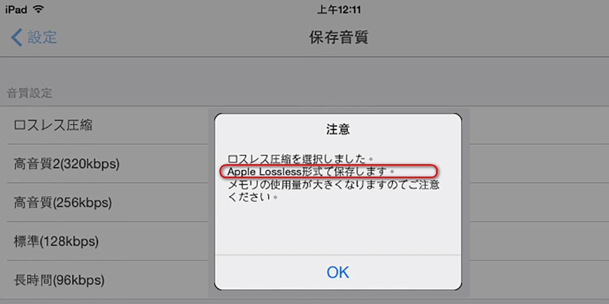 而 iOS方面,在其操作介面上有提到,最高保存音質是以 Apple Lossless ( ALAC ) 作為無損音樂檔案格式。