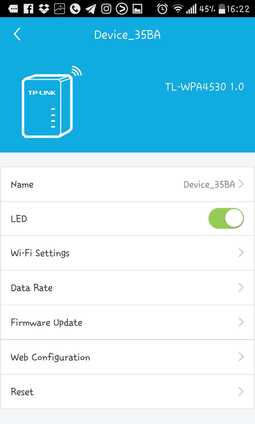 在 TL-WPA4530 操作介面可見,提供 2.4GHz 和 5GHz 雙頻選擇,她身上發光的LED 燈,在這裡也可以選擇設定開或關。