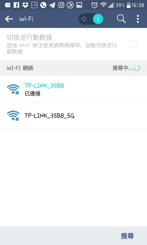 這狀態是在天台上所見畫面,Cap 圖當然是由 LG V10 透過TL-WPA4530 分享出來的 Wi-Fi 所得啦。在天台Wi-Fi 搜尋下,莫講樓下的 Router ,付近所有 Wi-Fi 能接觸的都無法接收到,黑洞到佢呢~~~下圖能見到付近裝置就只有TL-WPA4530 ,提供 2.4GHz 和 5GHz 雙頻選擇。