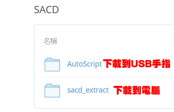 下圖可見 sacd_extract 這個檔案下載到電腦桌面裡,等待使用,內裡一共有兩個檔案內容。