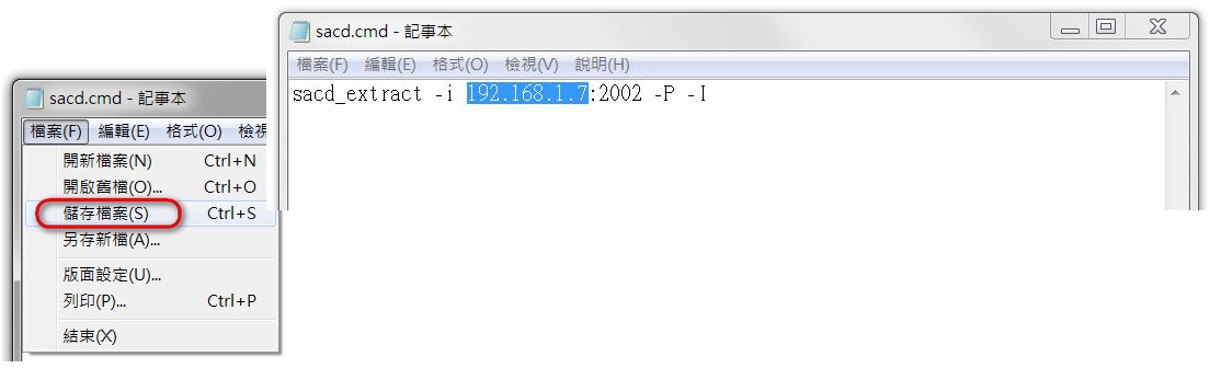 回來電腦面前,把剛下載得到的 sacd_extract 檔案打開,可見到有兩個檔案,利用 記事本 來打開 sacd.cmd 檔。