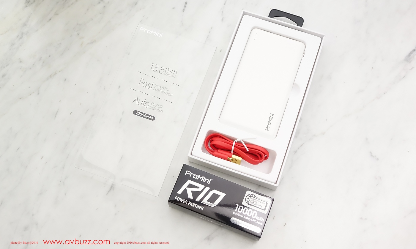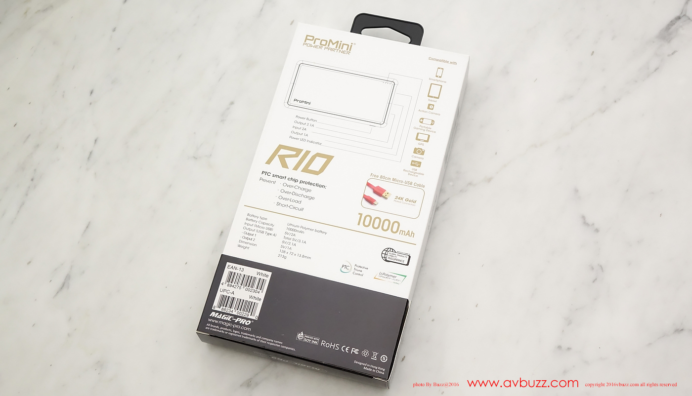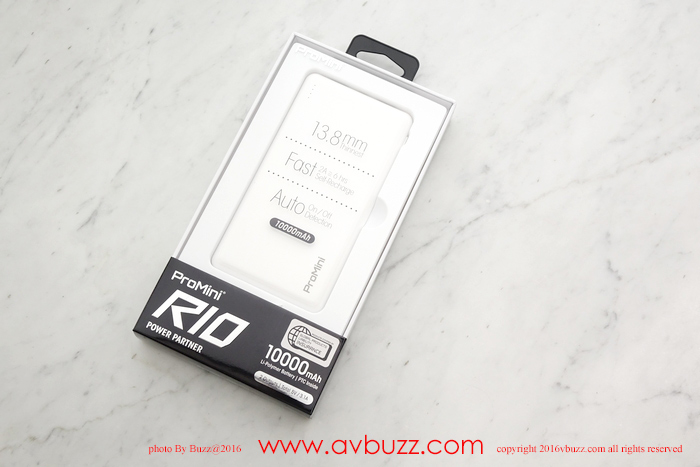 等到頸都長,終於等到 ProMini 推出 1萬 mAh流動充電器了,一口氣推出三個顏色,售價 $198港元。由於手上所用的LG V10是白色機身,好自然第一志願配上白色 。包裝上除提到是10000 mAh容量外,還列出三大賣點,分別是夠薄,快餵飽,和自動開關。