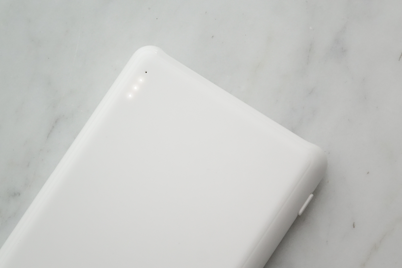 雖然10000 mAh,但重量只有 213 g , 而且厚度只有 13.8mm ,加上表面光滑,非常好的手感。