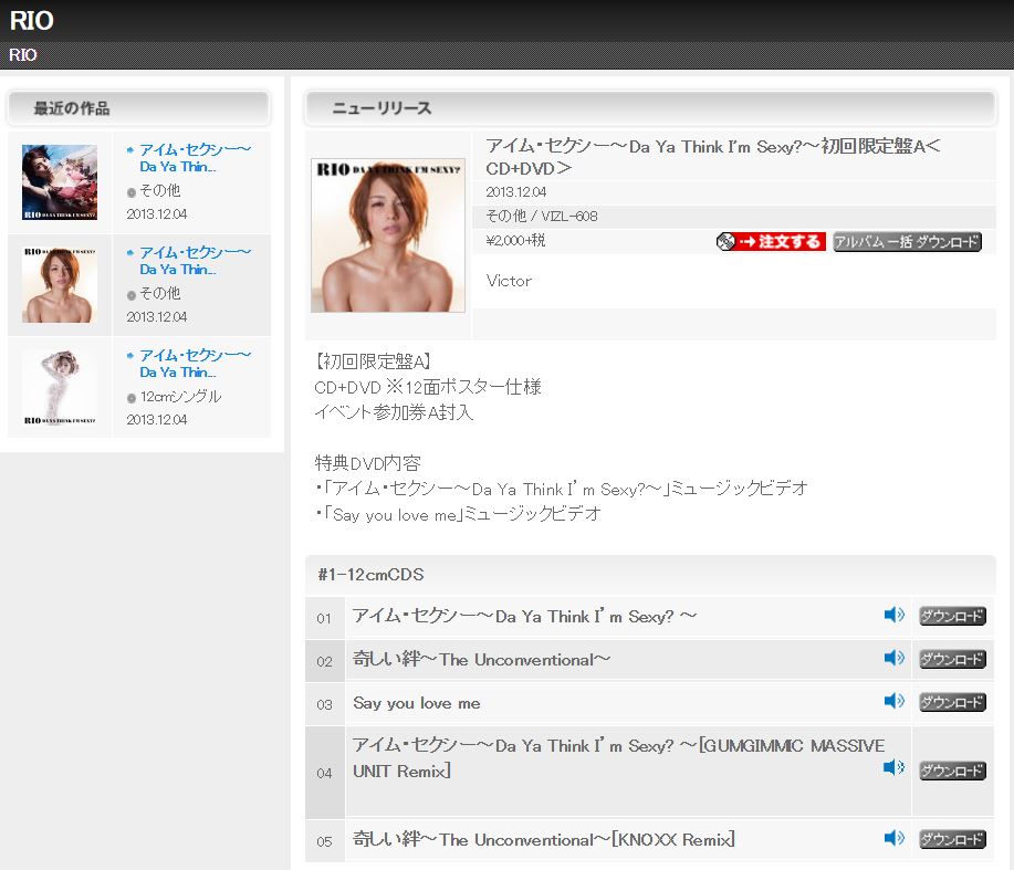 RIO 的光碟咁出名,無奶油無看過吧? 她 2013年推出首張專輯,翻唱自 Rod Stewart 的 Da Ya Think I’m Sexy? 歌曲,你無睇過DVD裡的MV,都應該有聽過隻 CD吧。係呀,我講緊佢隻CD+DVD呀,唔係你以為我講緊乜呀? ^^