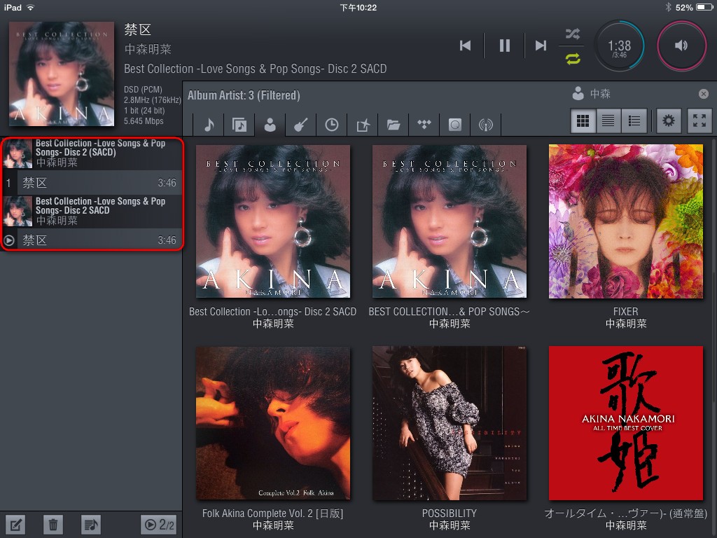 訊源當然是我最喜歡的 LUMIN 吧,透過她的 Playlist 便輕易切換AB作比較,而且曲目也是我最熟識的禁區 ( 張國榮改編為第一次 ) 。
