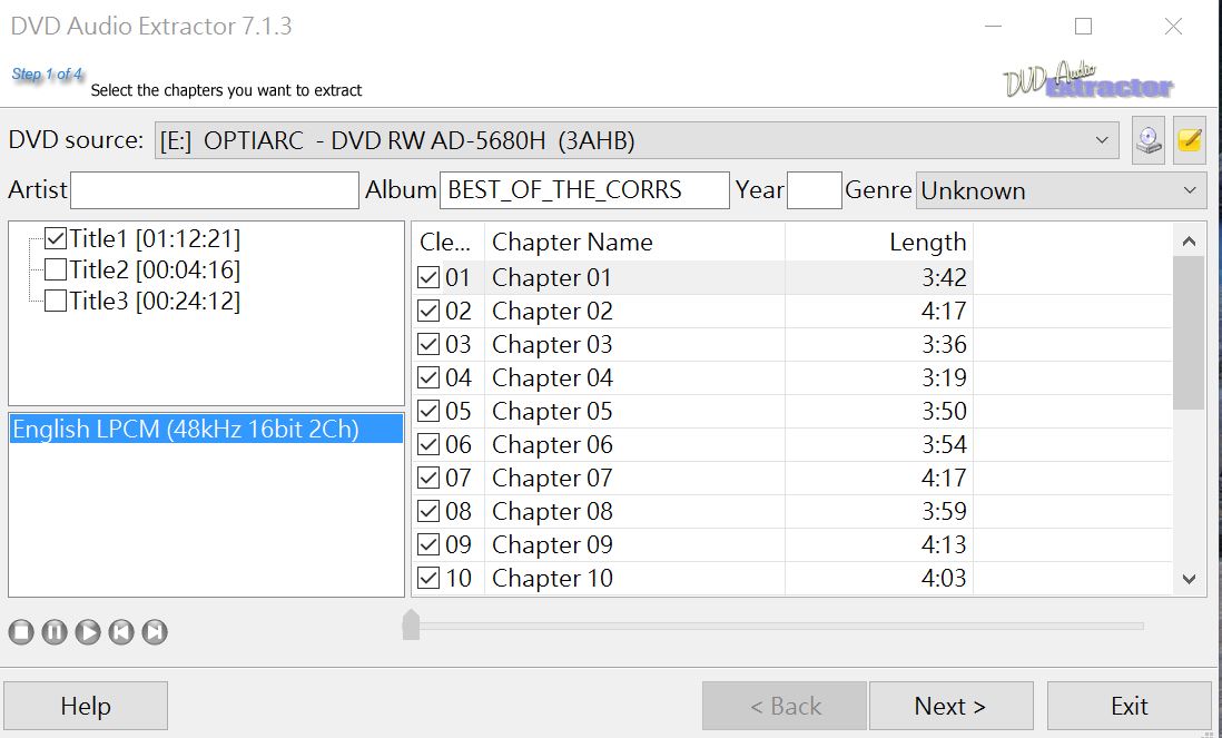 透過 DVD Audio Extractor 軟件可見到這 DVD 聲軌是屬於 LPCM,那就好了。