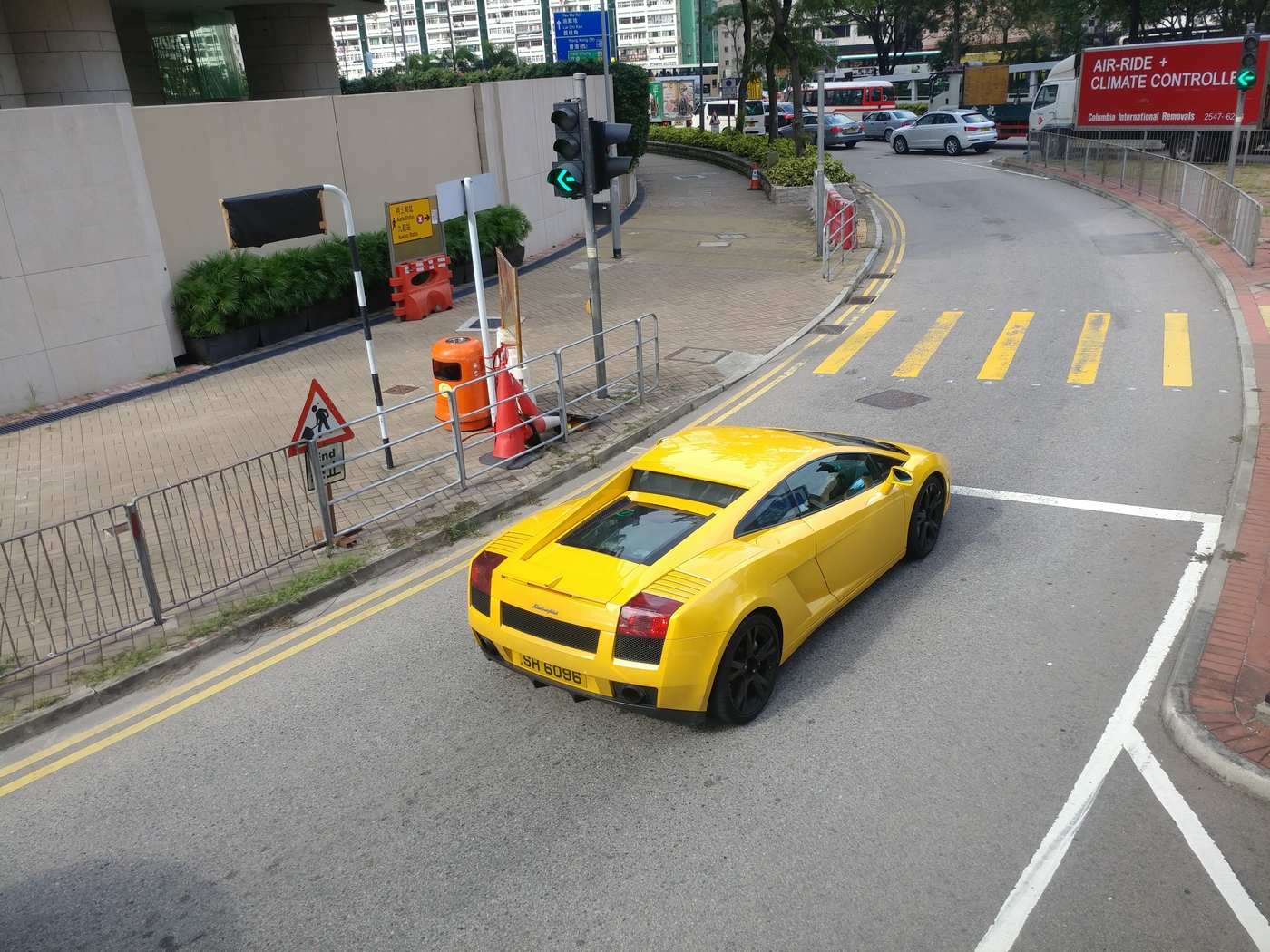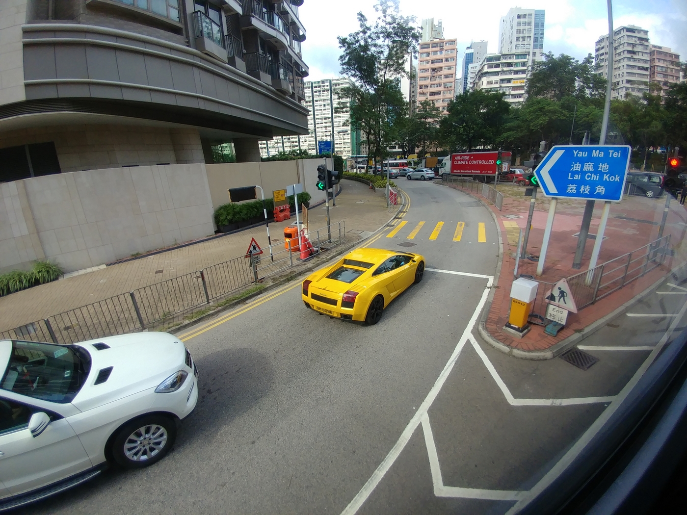 在雙層巴士上層窗外見到佢,用1600 萬像素鏡頭攝佢魂魄,f/1.8 光圈, 75 度角夠距離了。唔準移動,留在原位,立即切換超廣角鏡頭看看什麼效果?