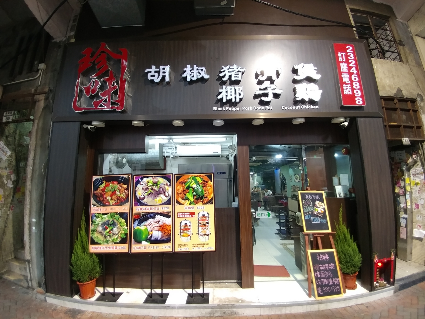 原地不動,立即切換鏡頭吧,135 度超廣角鏡頭下,不但同時影到招牌和招牌菜名字,仲有訂座電話,而且見到整間鋪面大小和放在門外的所有物品,而且表達埋店鋪左右兩邊都各有一條樓梯,實在利害啊~~~不過這個鏡頭只有原本鏡頭的一半解像度,即只有800萬,光圈沒有 f/1.8,而是 f/2.4 ,如只屬 Share 性質一定沒問題,放大做 Job 就免問喇,其實手機來的想點呢?
