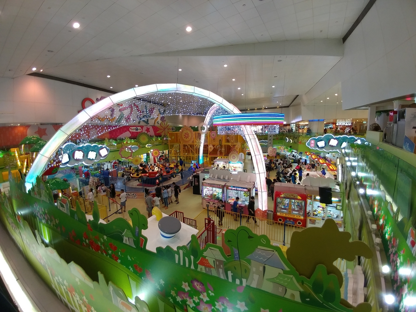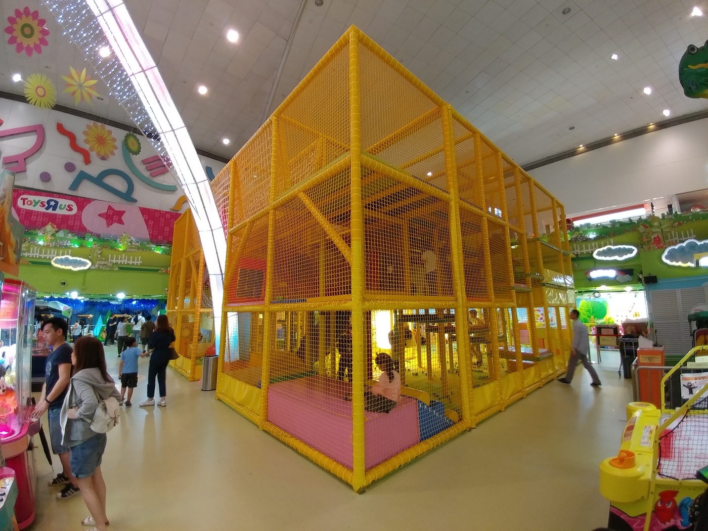 冒險樂園裡的三層高兒童架,用75度鏡頭成像是這個樣子。