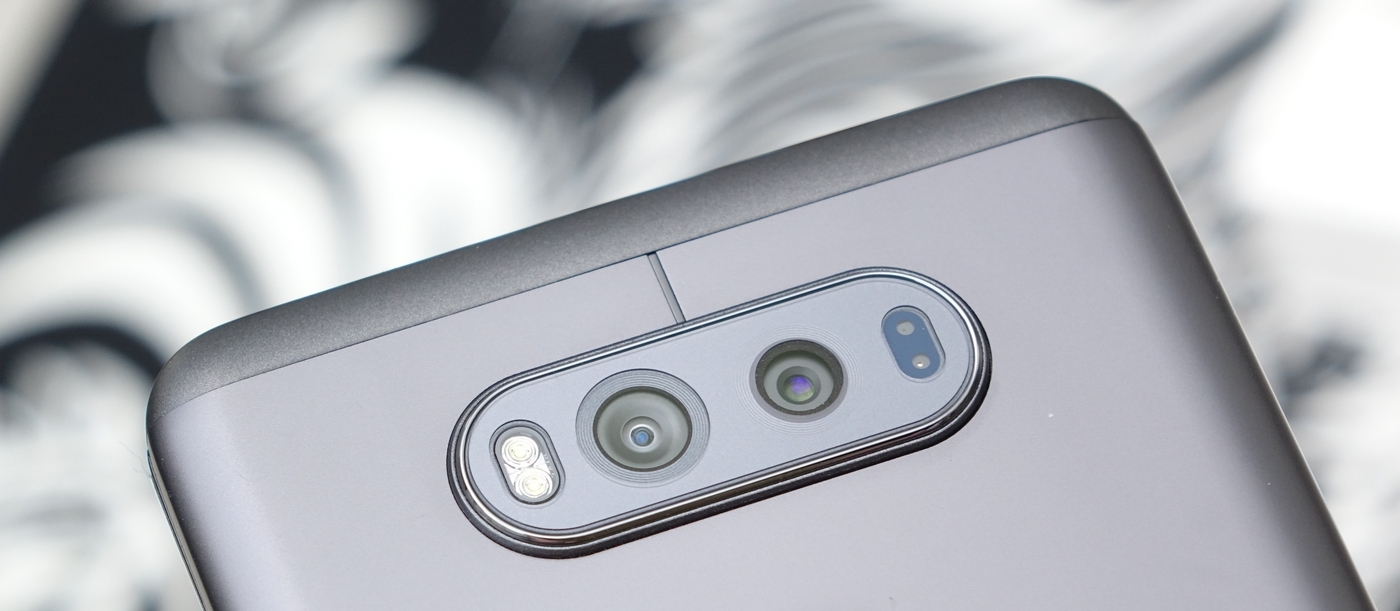 LG V20 提供合共三個實體鏡頭在機身上,包括一個前鏡頭,和兩個後鏡頭。前置實體單一鏡頭為 f/1.8 光圈 , (120 度廣角) 500 萬像素鏡頭,可透過軟體達到模擬 83 度標準廣角。所以前置實體鏡頭需得一個,但同樣能提供兩個角度 ( 83/120 ) 的成像效果。下圖所見,就是前置單一實體鏡頭,但可拍出兩個不同的角度來。