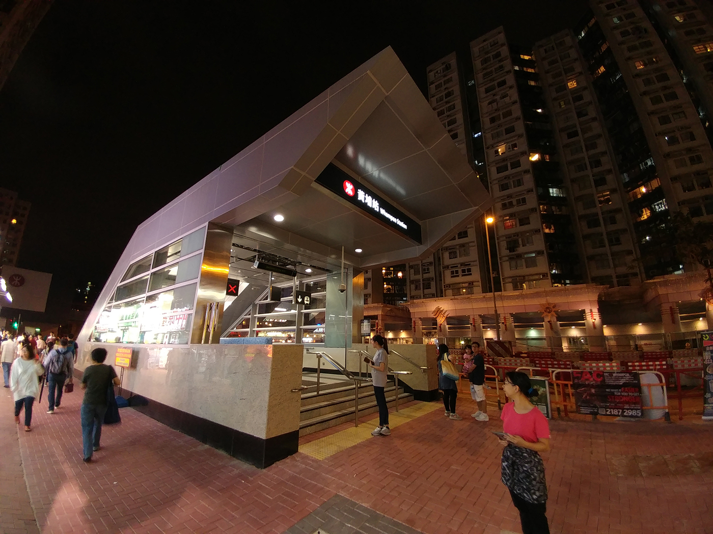 135 度超廣角鏡頭下的黃埔站出口,表達到整個站的樣子和附近出現環境,非常滿意了。