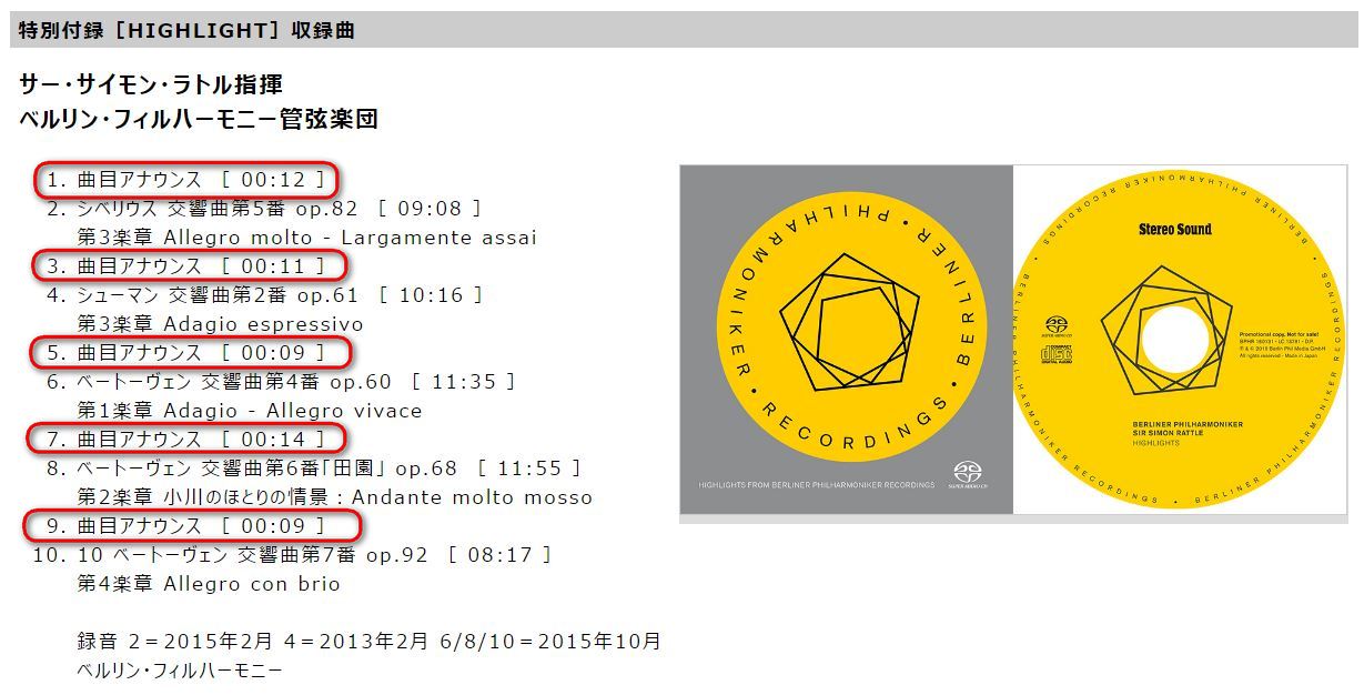 官網可見今次附上 SACD 內收錄曲目,還有封面和光碟資料。曲目是大家都非常喜歡的古典音樂,但完全不是我杯茶,可以講對牛彈琴。留意到 10 首曲目,其實只有 5首樂曲,其他5首都是在開頭長十多秒內的男聲介紹該首曲目,所以不要誤會有10首樂曲。