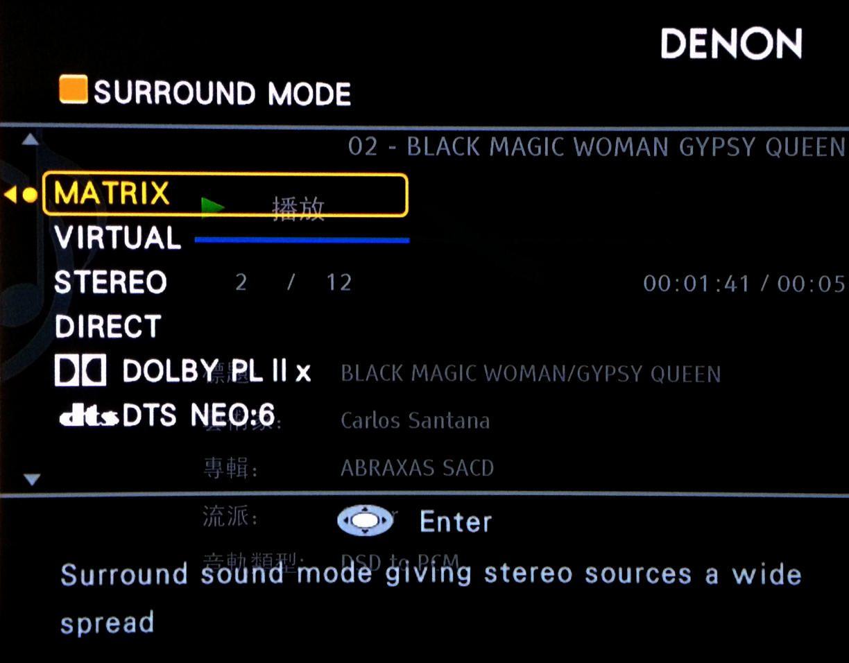 用家也可以透過 Av amp 內置不同模式來欣賞這些曲目,我們人比較喜歡 Denon 所提供的 MATRIX 模式。