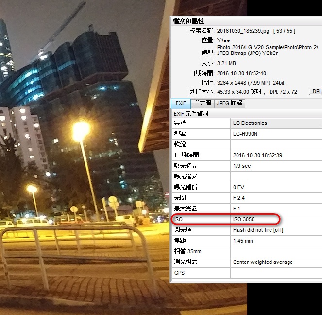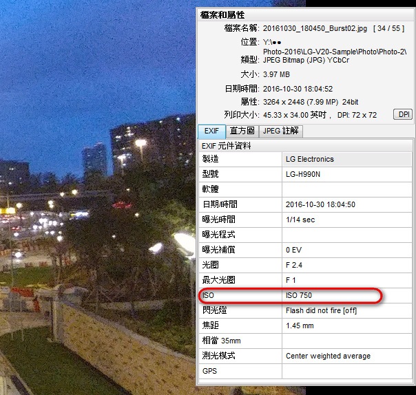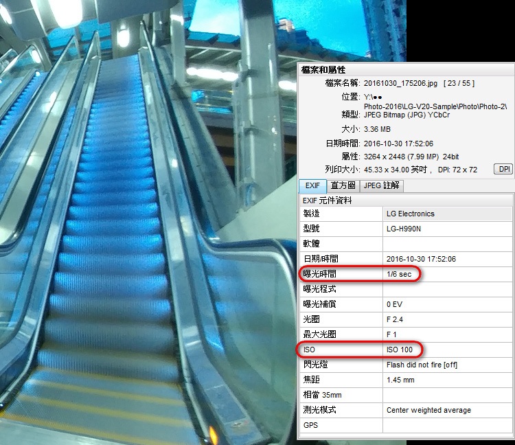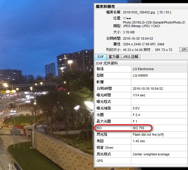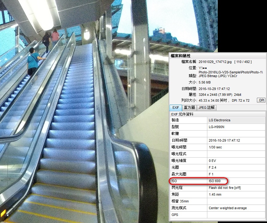 全自動模式下拍攝, LG V20 的成像被設為 ISO 600 ,光圈 f/2.4 , f/2.4 光圈當然沒問題,但手機 ISO 600 就….