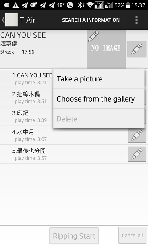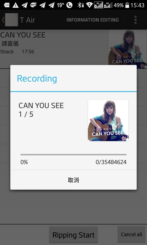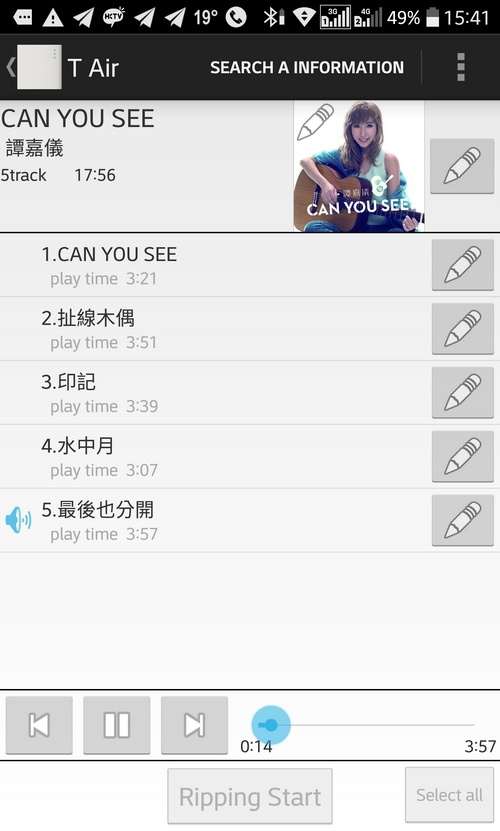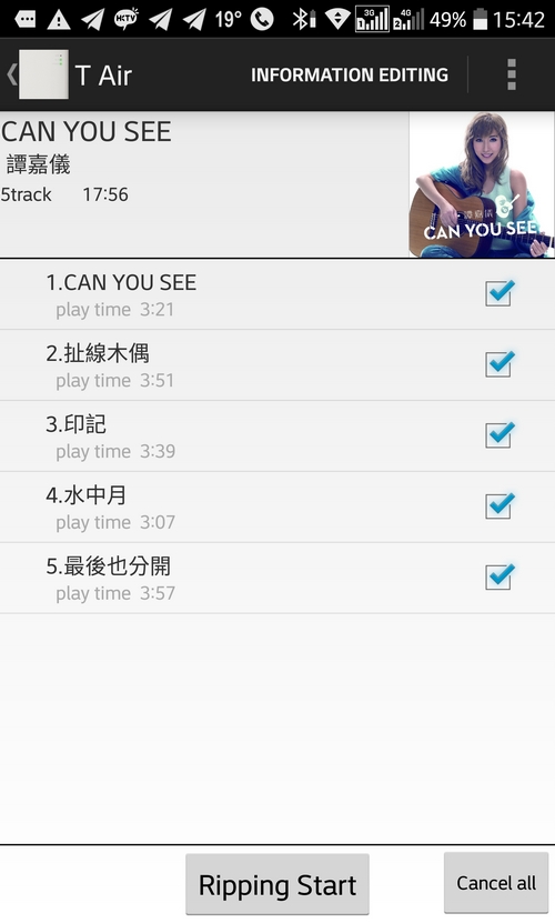 T-Air 強項就是使用 Gracenote 資料庫,中文歌庫難佢唔到。嘿~~~唔知係我黑仔,定太早Rip ,這CD在 Gracenote 內,居然無資料…..今日真係黑,唔係晒黑。