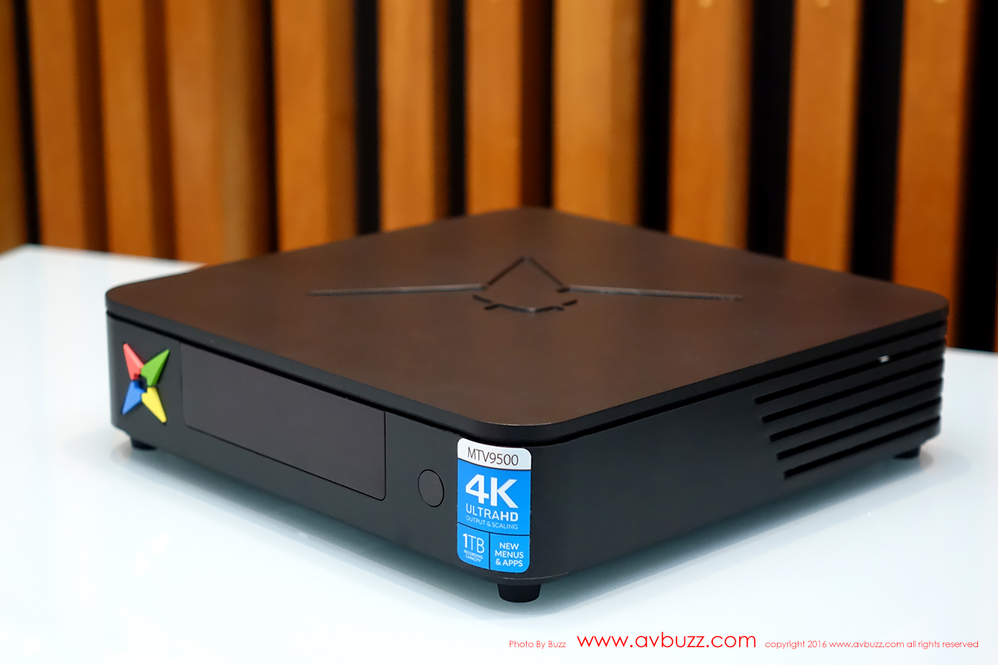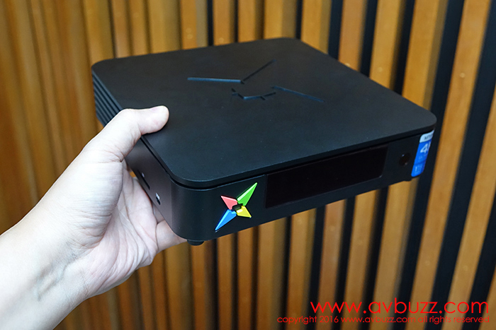 透過 Apple TV和手的比例,可大約猜想到 MTV-9500 實物大小。