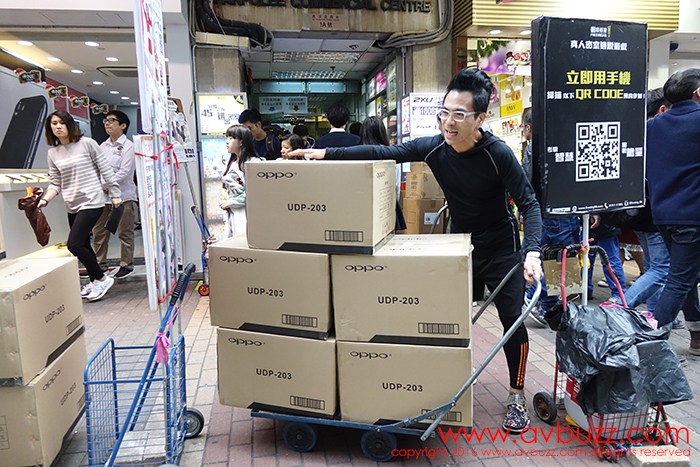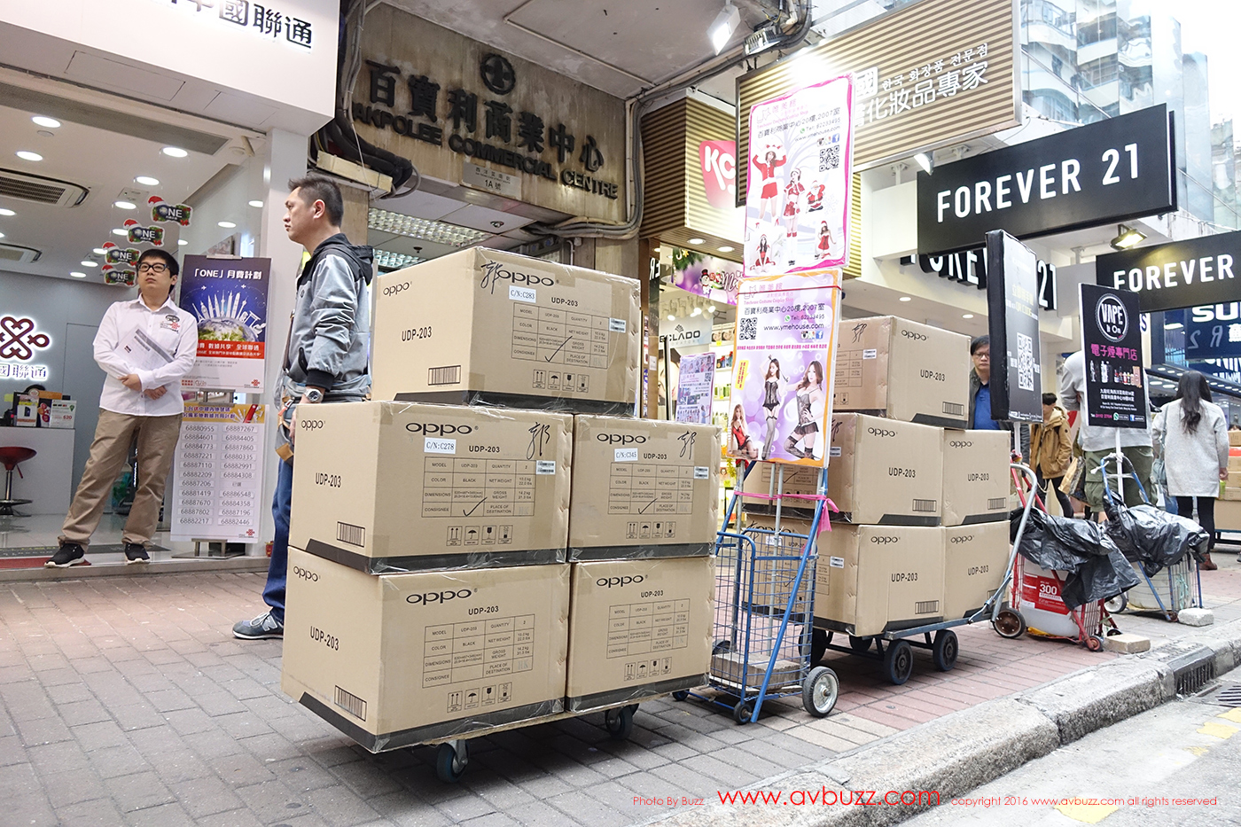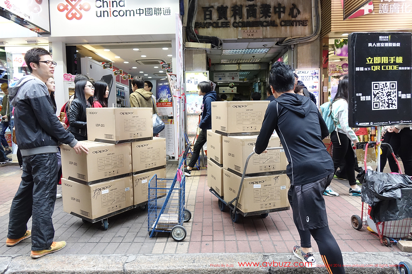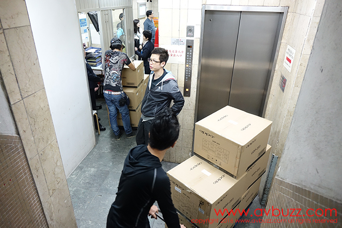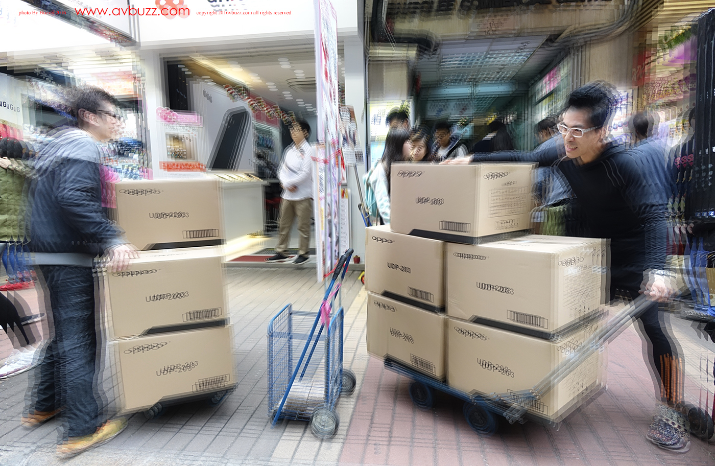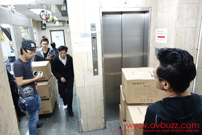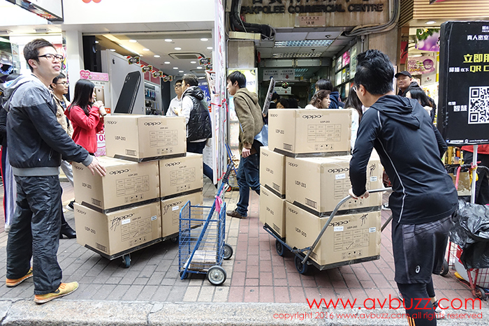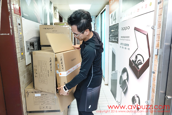 Nipon 店長收到運輸通知貨到,他立即到樓下親自迎接,一箱兩部的 OPPO DUP-203,就咁放在街上,場面雖然無早前國內OPPO 倉那張相咁震撼,但都非常吸睛。